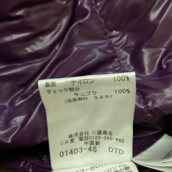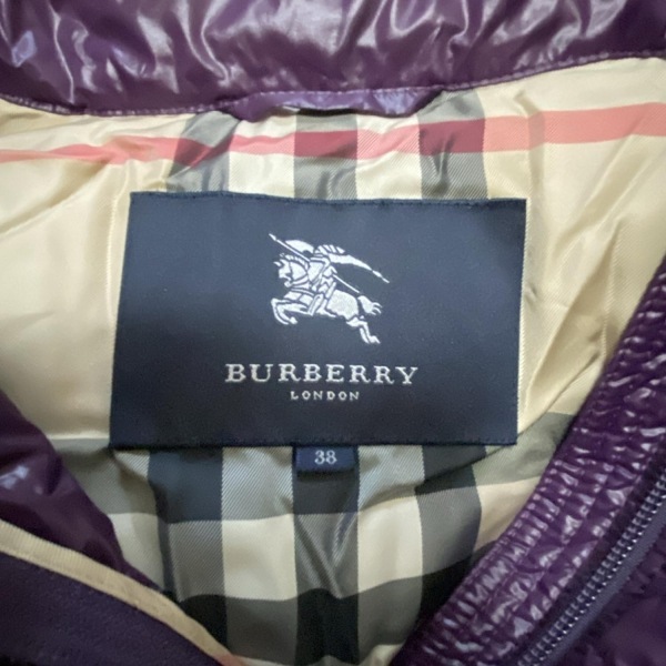 バーバリーロンドン Burberry LONDON ダウンジャケット サイズ38 L - パープル×ライトブラウン×黒 レディース 長袖/ジップアップ/冬