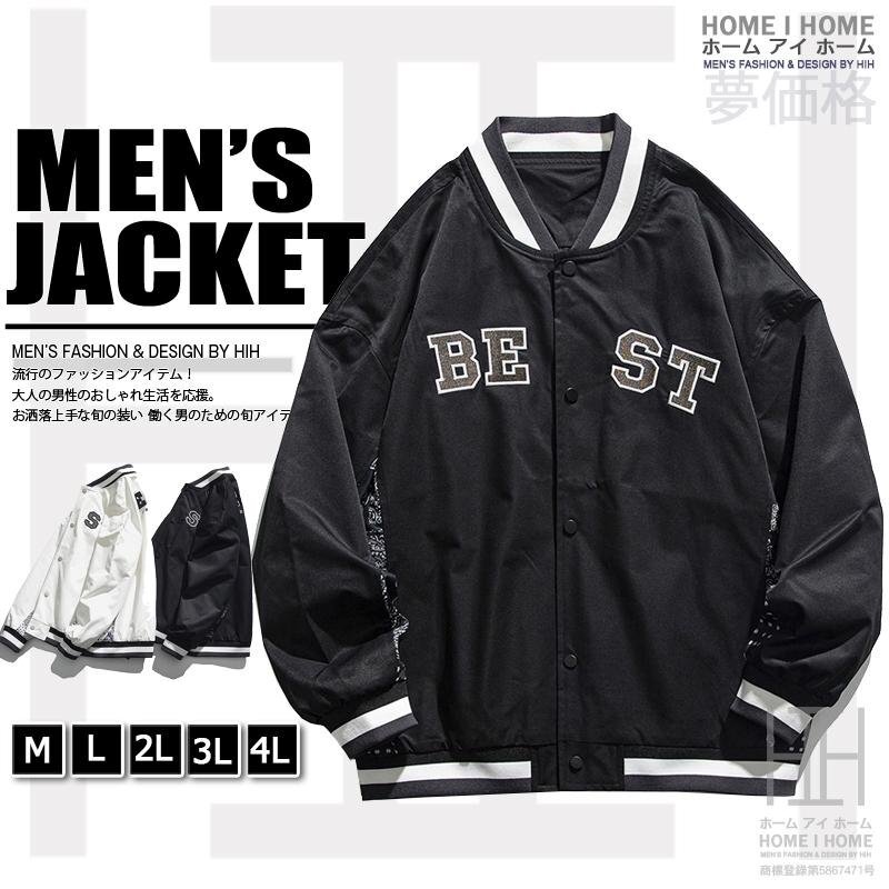 スタジャン ジャケット メンズ レディース ロゴ 英文字 切り替え カジュアル 学生 高校生 オシャレ 秋 春 ジャンパー ブルゾン アウター ビッグシルエット