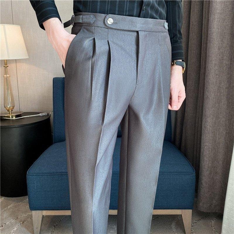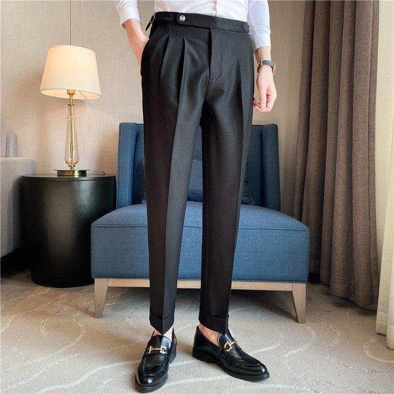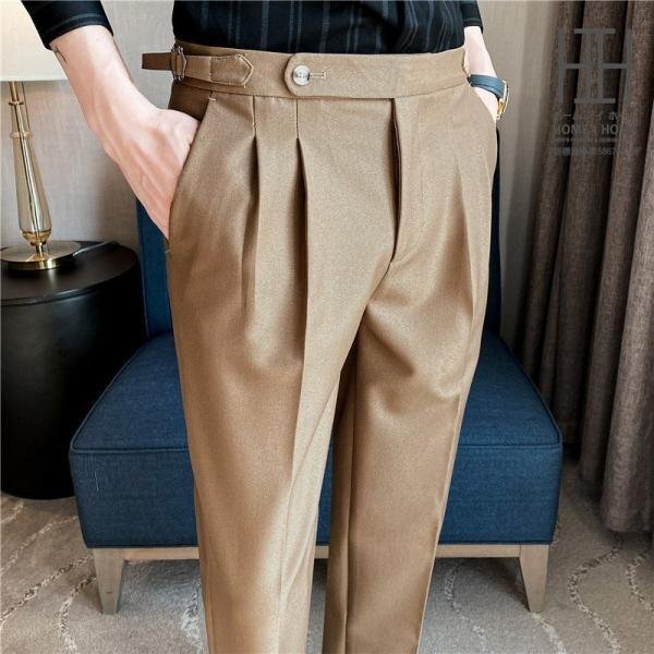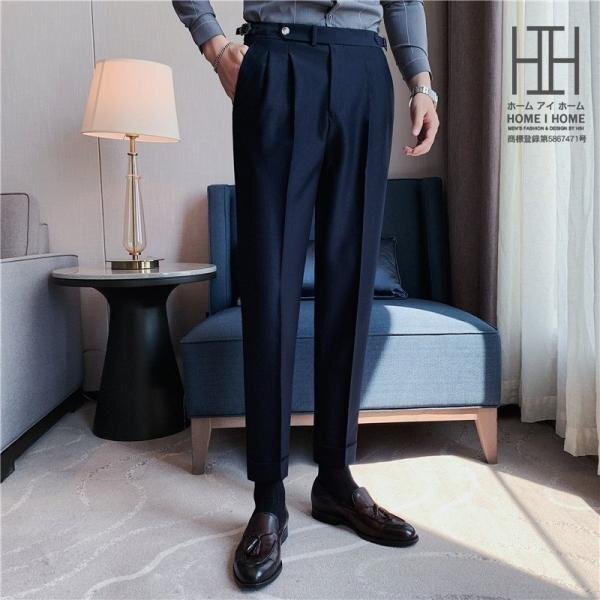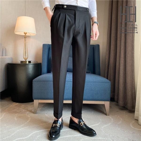 スリムスラックス メンズ 無地 ウエスト調整可 ツータック センタープレス ビジネス 大人の着こなし 通勤 スーツ ボトム メンズファッション