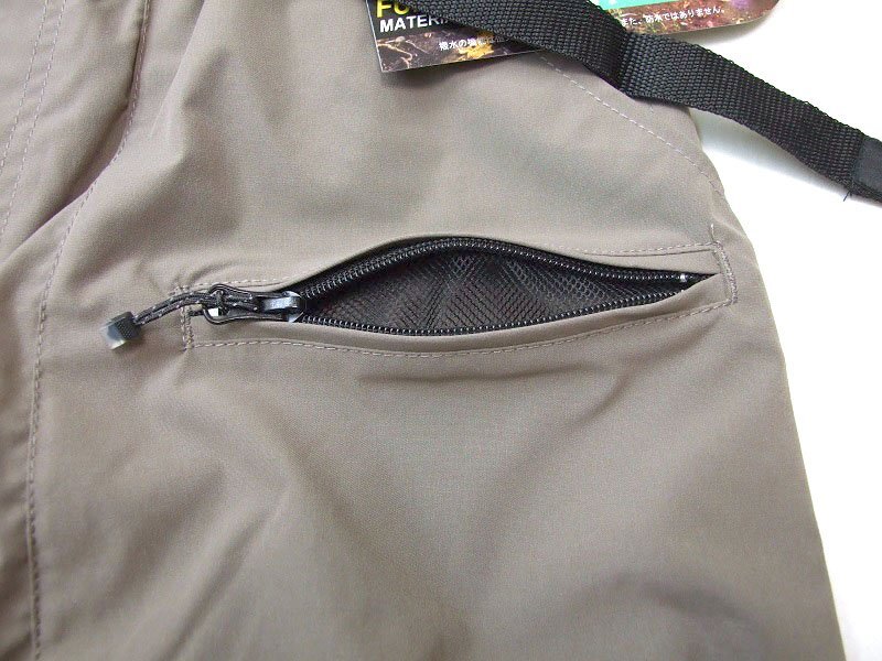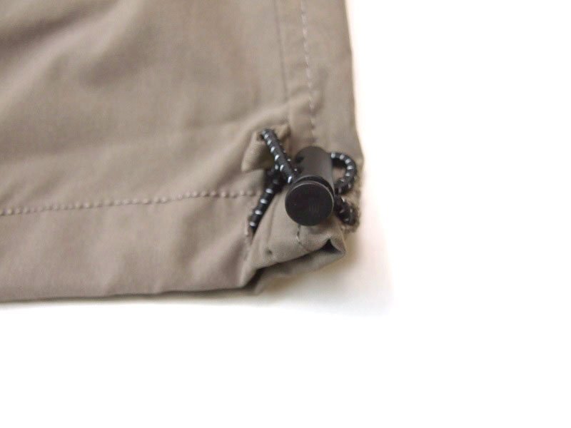 UVカット、ポリストレッチ撥水、ジップポケット、クライミングバックル 、裾ストッパー