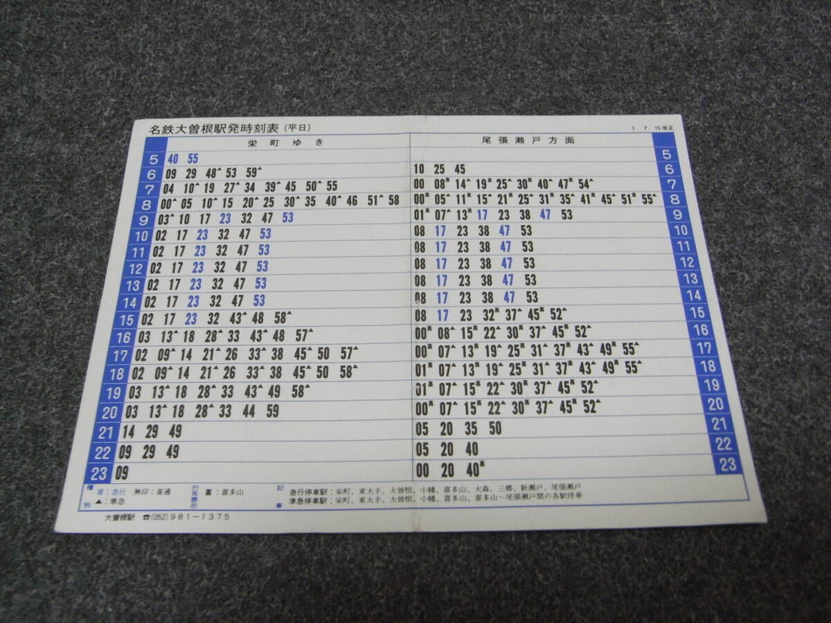 名鉄大曽根駅発時刻表 平成1年7月15日改正 名古屋鉄道