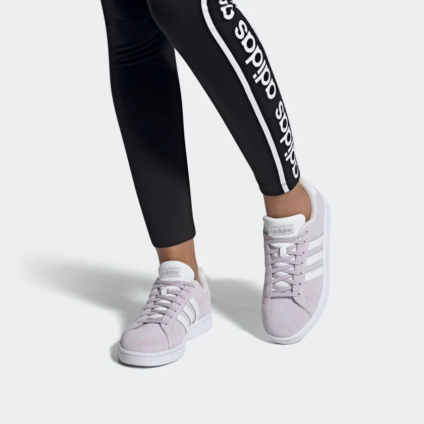 アディダス 22.5cm グランドコート adidas GRAND COURT LE パープル ホワイト レディススニーカー 紫 白 天然皮革
