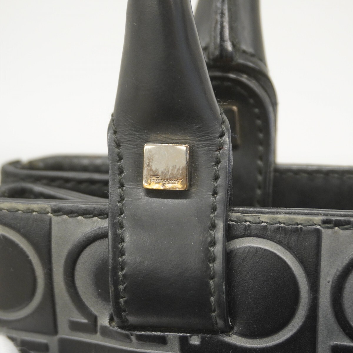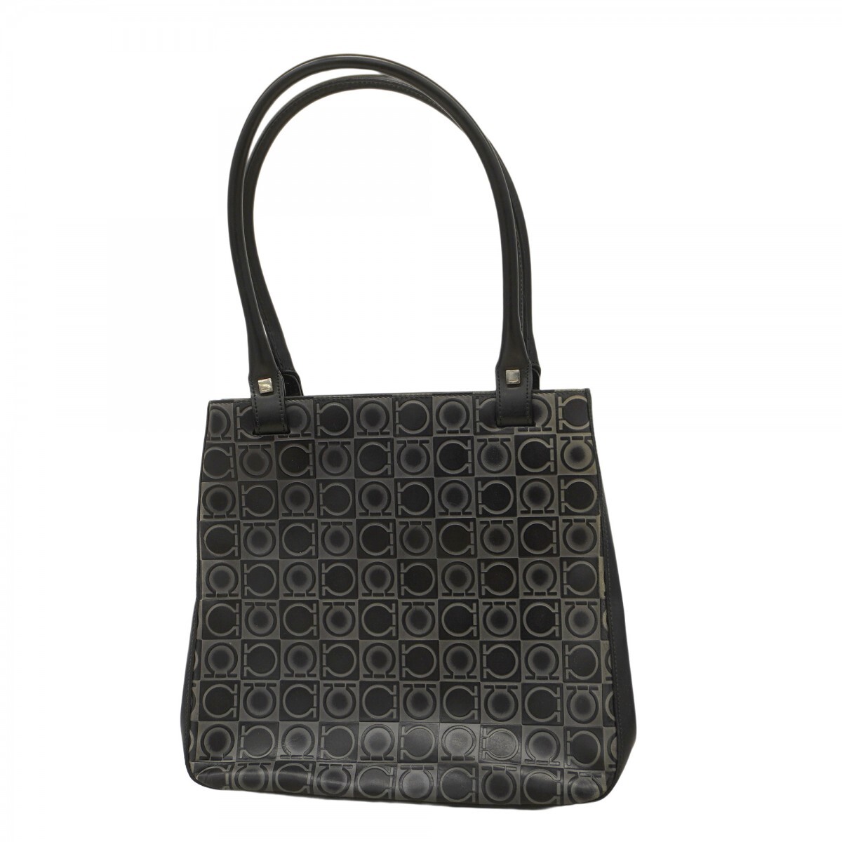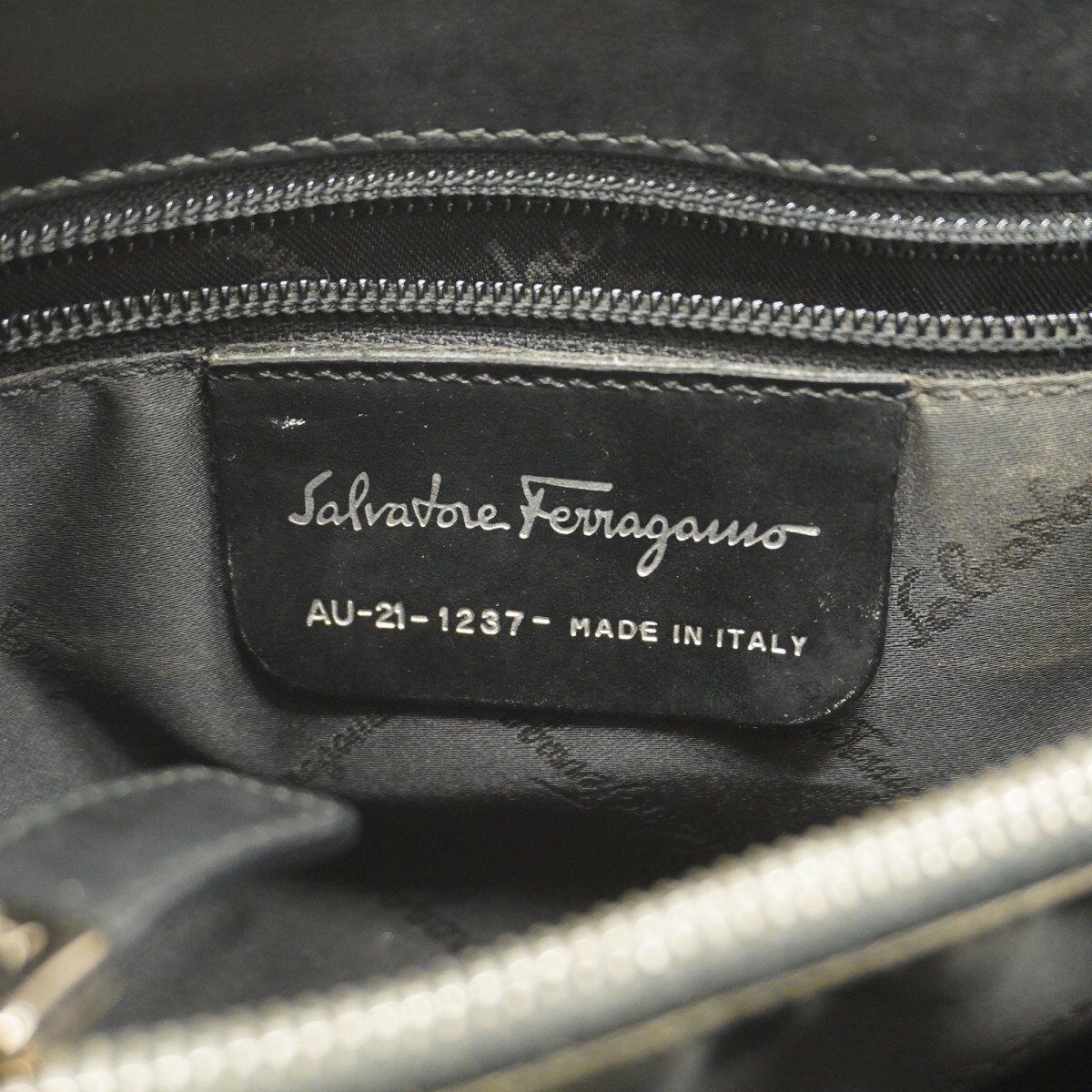 【5ma0819-h】サルヴァトーレフェラガモ ショルダーバッグ ガンチーニ レザー ブラック グレー シルバー金具【中古】レディース