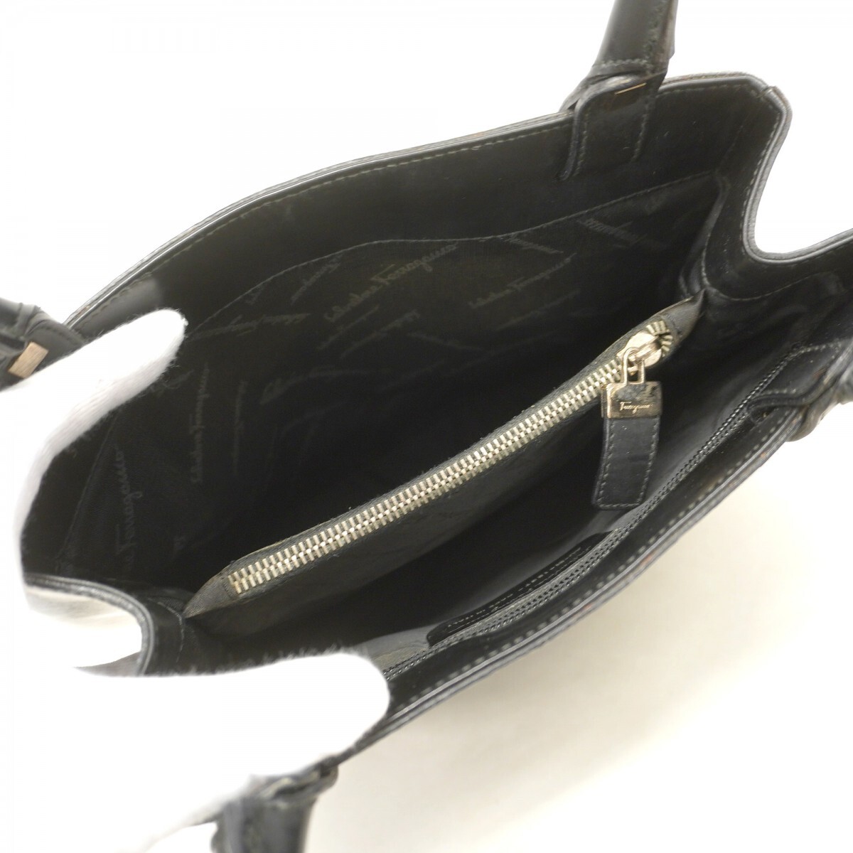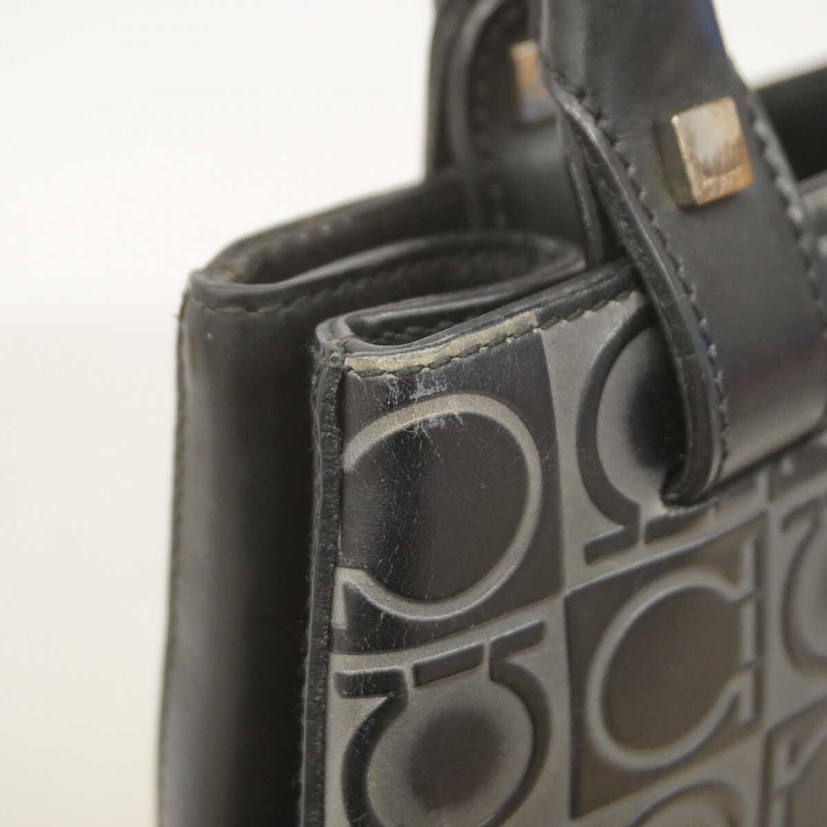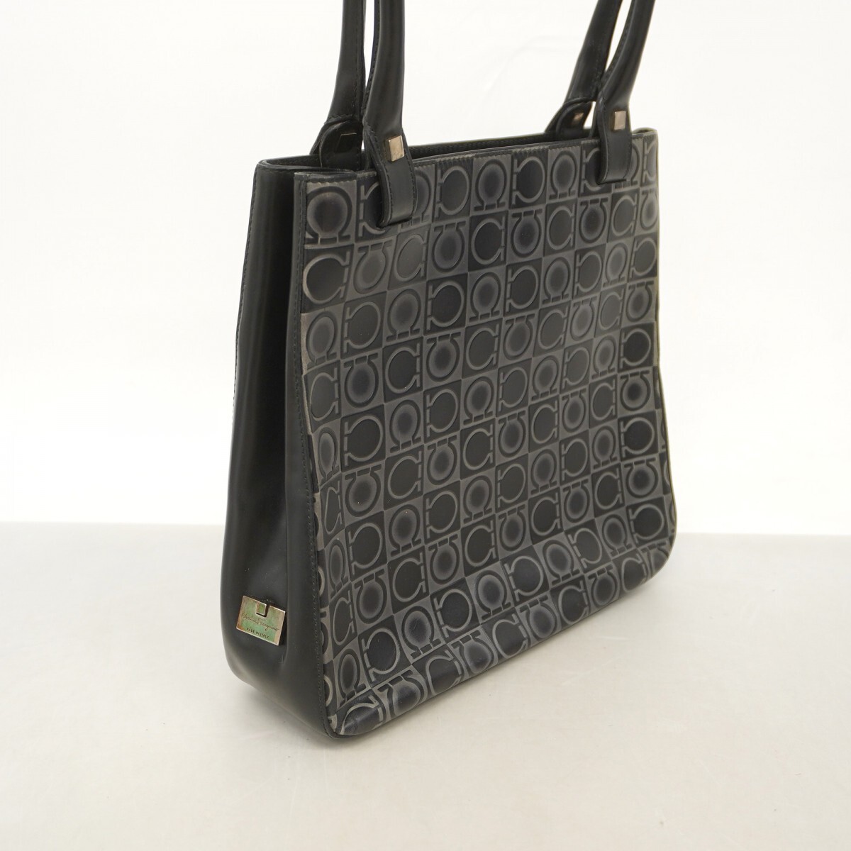 【5ma0819-h】サルヴァトーレフェラガモ ショルダーバッグ ガンチーニ レザー ブラック グレー シルバー金具【中古】レディース