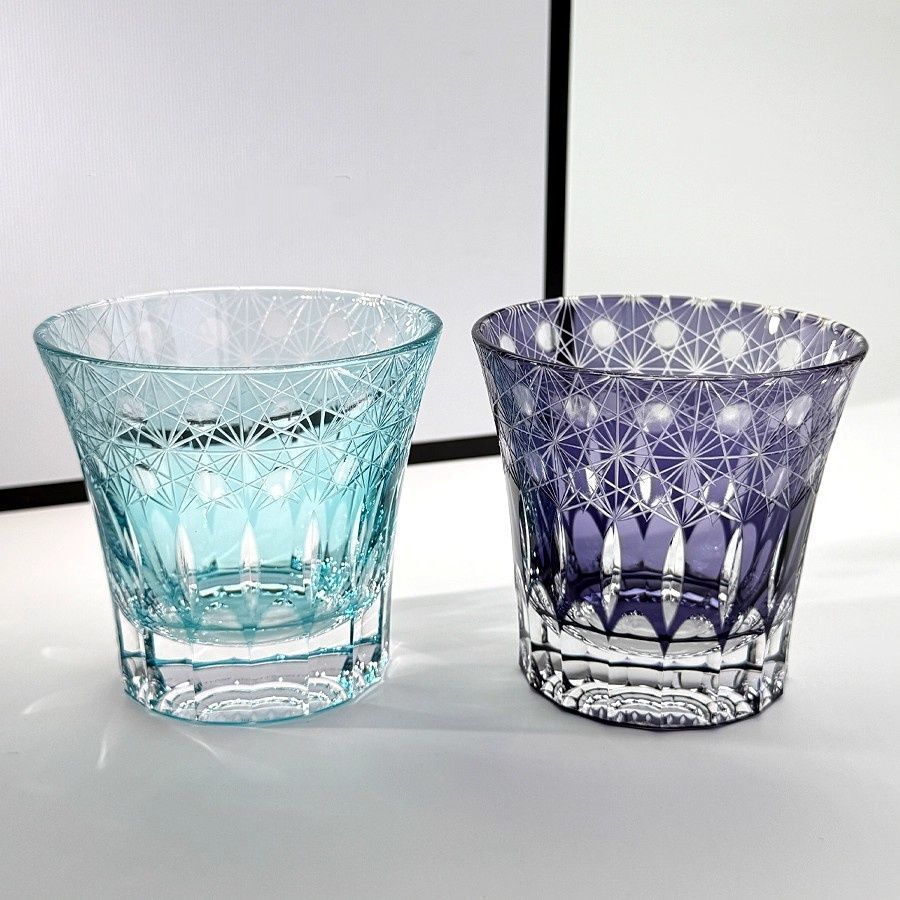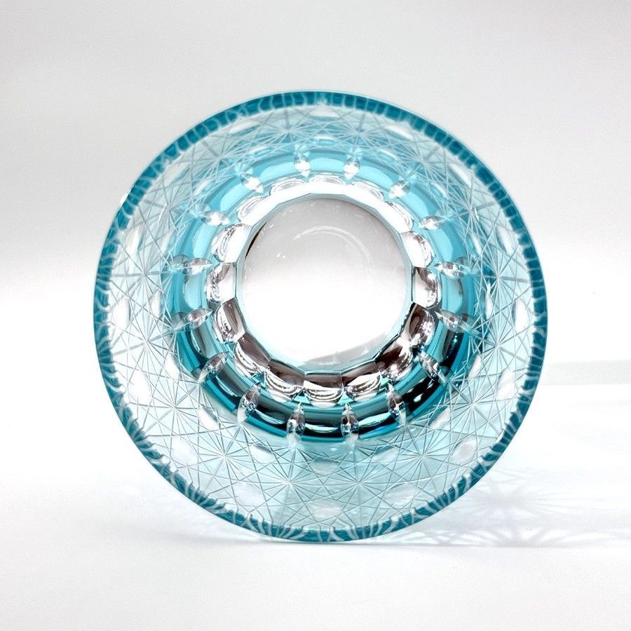 ロックグラス コップ ウィスキーガラス ガラス レトロ キレイめ 美品 クリスタルガラス 本体のみ アクアマリン☆8-AK0092
