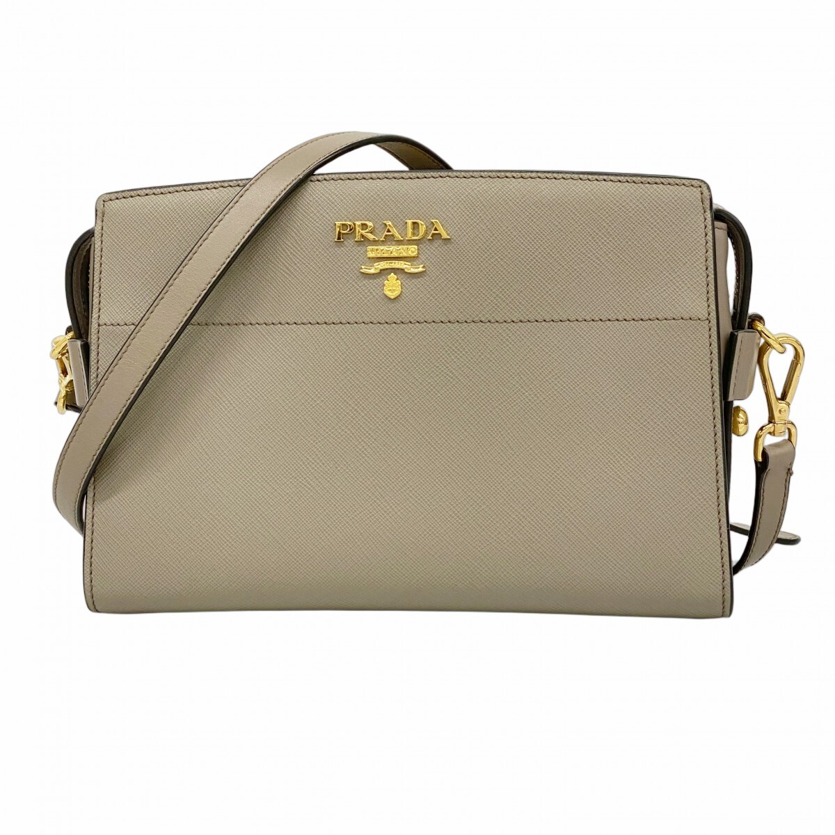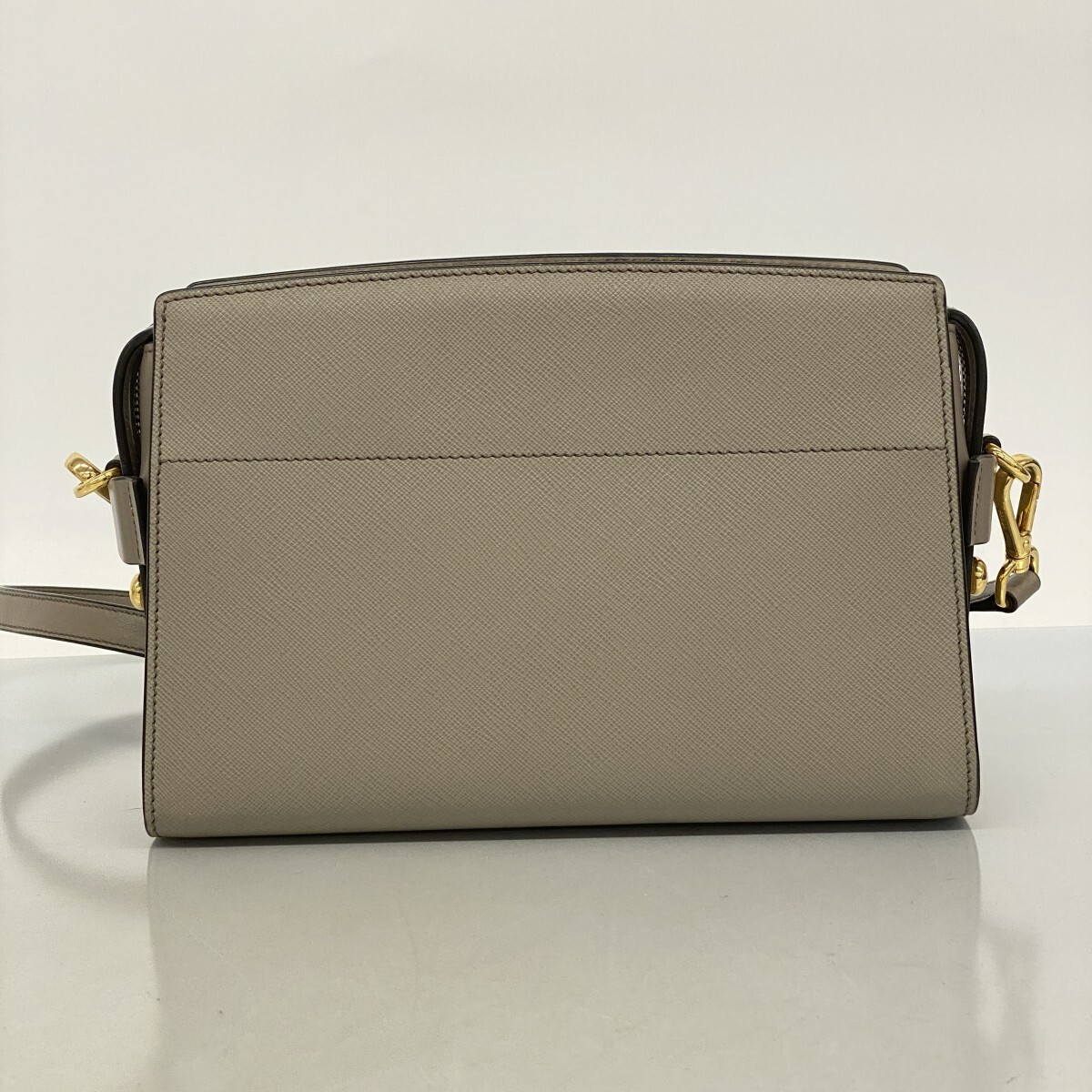 【5ma0795】プラダ ショルダーバッグ サフィアーノ レザー グレー ゴールド金具【中古】レディース