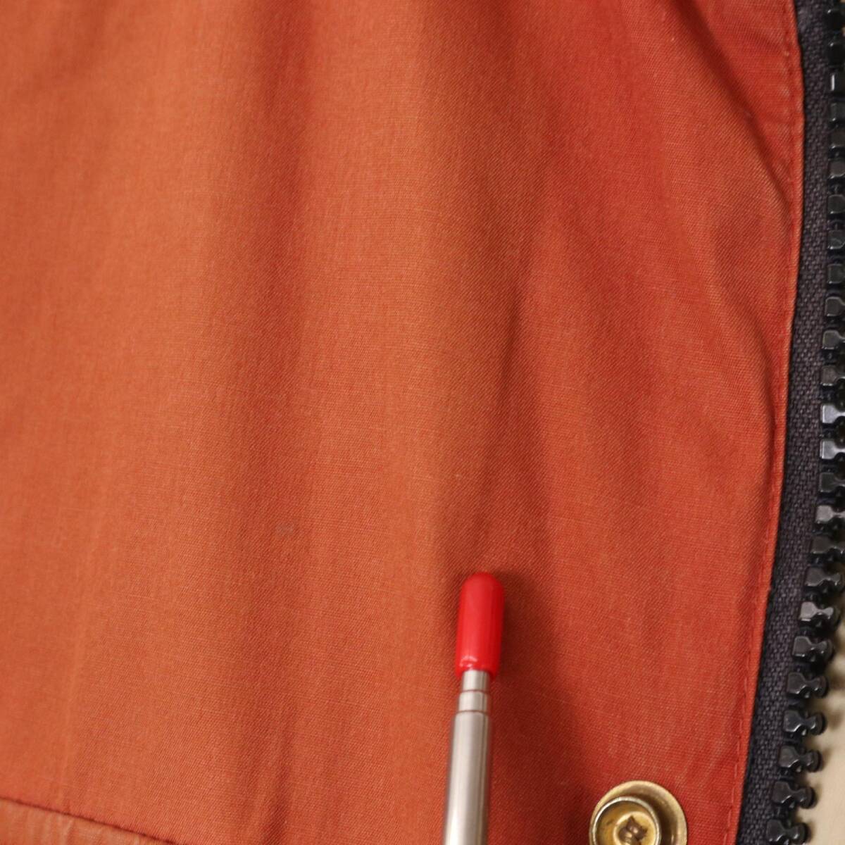 | 【商品管理番号】 A0494 【ブランド】 Eddie Bauer/エディーバウアー 【サイズ】 L相当 【実寸サイズ】 着丈:約80.5cm 身幅:約64cm 裄丈:約92.5cm 【主な素材】 表地 : コットン 中綿 : 55214 【色】 オレンジ 【仕様】 80年代 フード取り外し可能、裾ドローコード 【状態】 特記事項: 全体的に使用感がございます。着用に問題はございません。 | |||