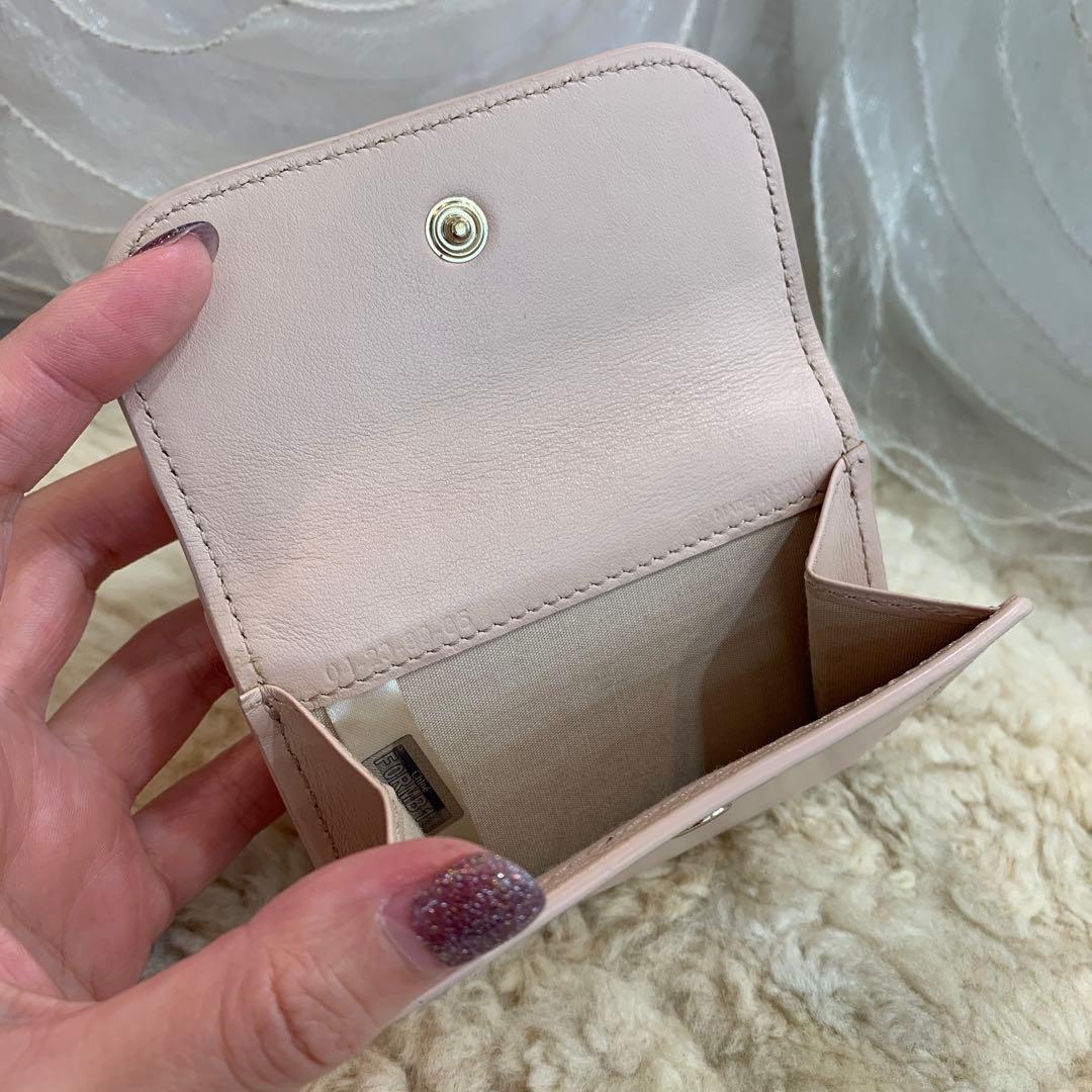 札入れ・カードポケット内のレザー全体にシワ感、コインケース内に薄汚れ、フラップのわずかな圧痕、折り目の僅かなズレがあります。