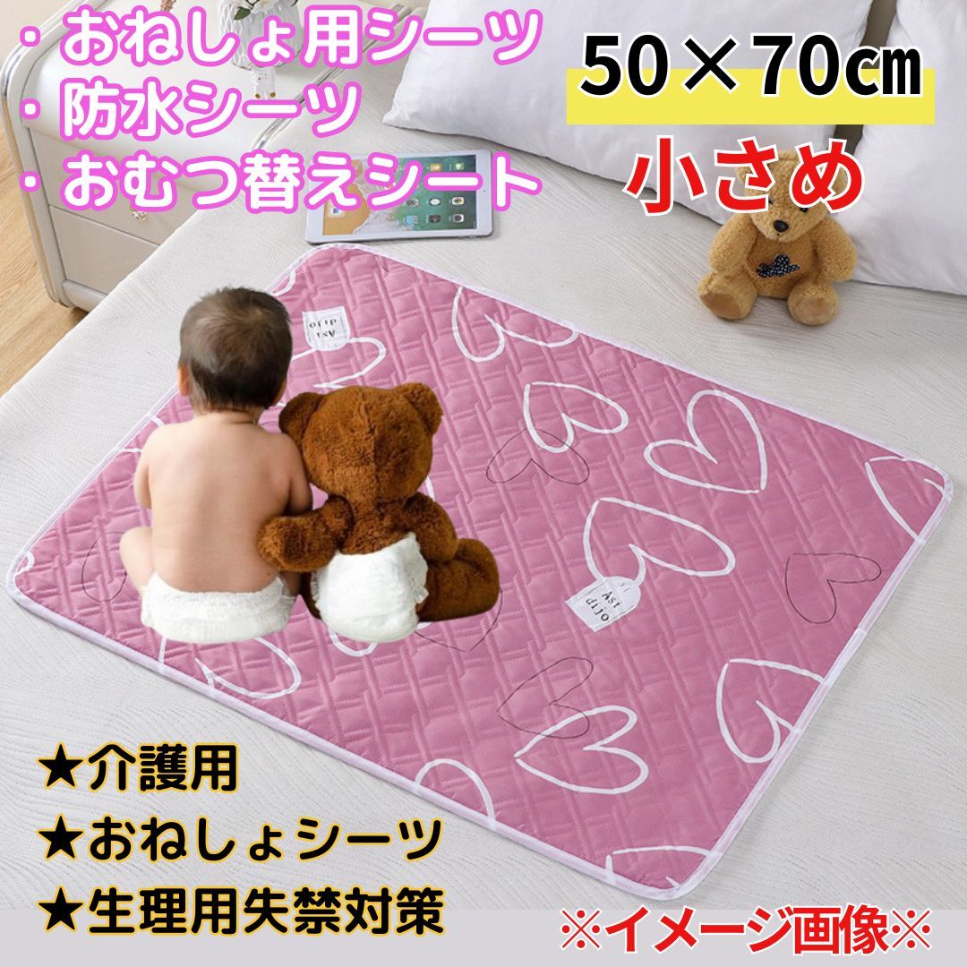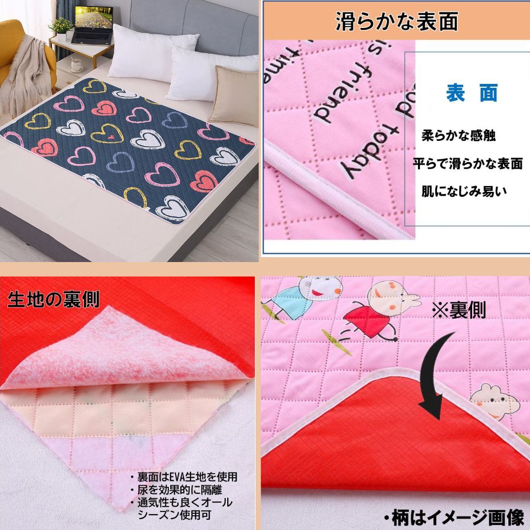 50×70サイズ おねしょシーツ 防水シーツ シート パッド 敷マット 生理用 おむつ替え 介護 可愛い 洗える ハート柄 ピンク&ネイビー