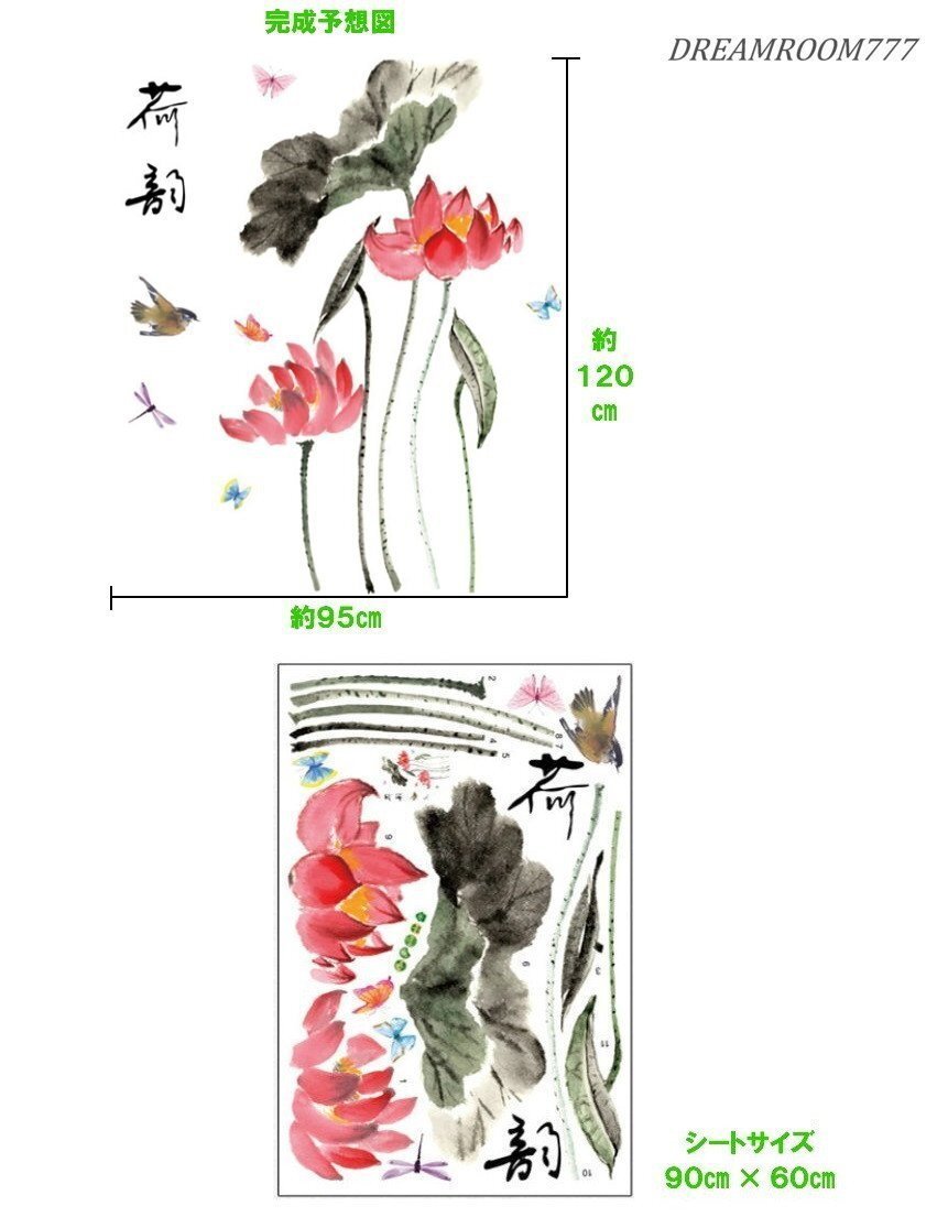 和柄 水墨画調 蓮の花 ロータス デカール ウォールステッカー 【C829】インテリアステッカー はがせるシール