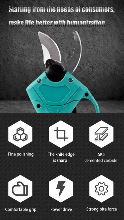 新型電動ハサミ 充電式 切断直径30mm 庭木/枝切り/果樹用/電線/ケーブルなど 剪定鋏 電池2個 (A120)