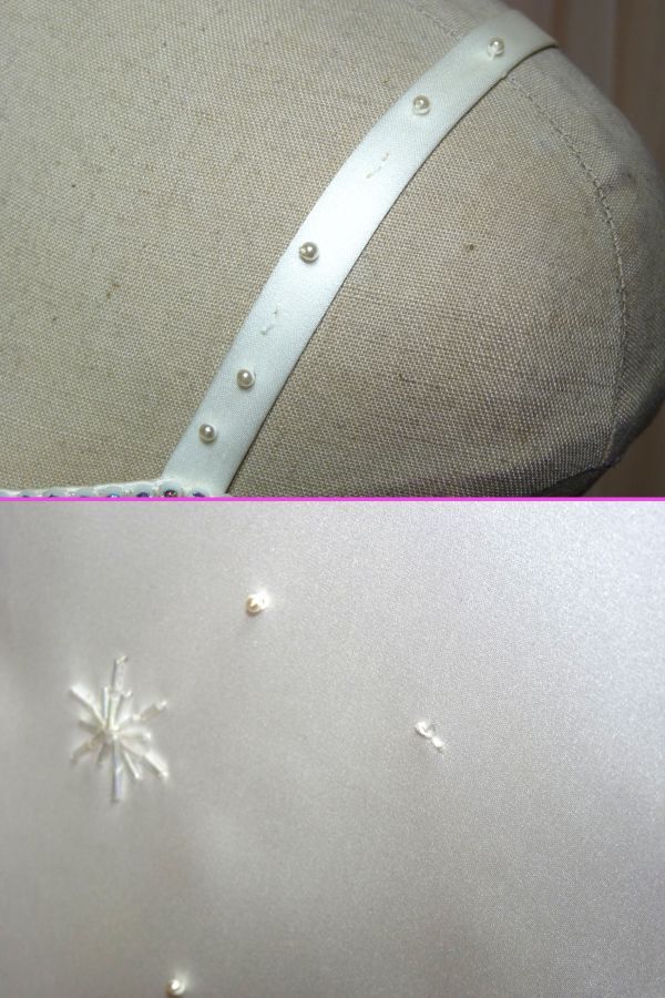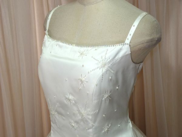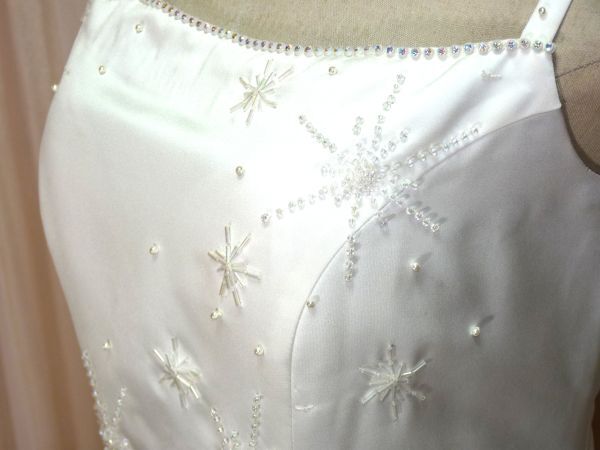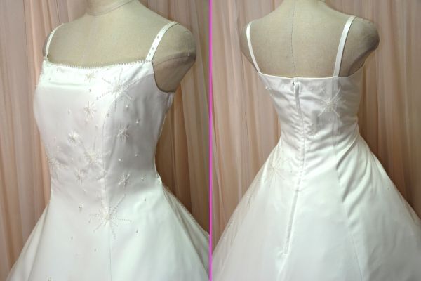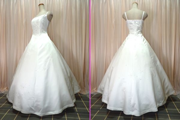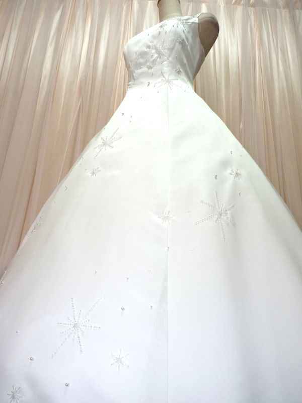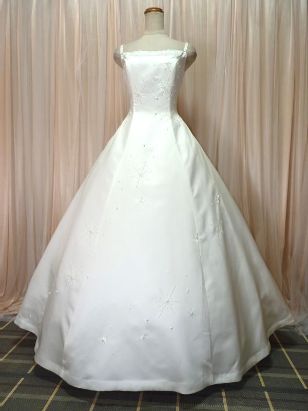 ホワイトサテンのAラインウエディングドレスです。