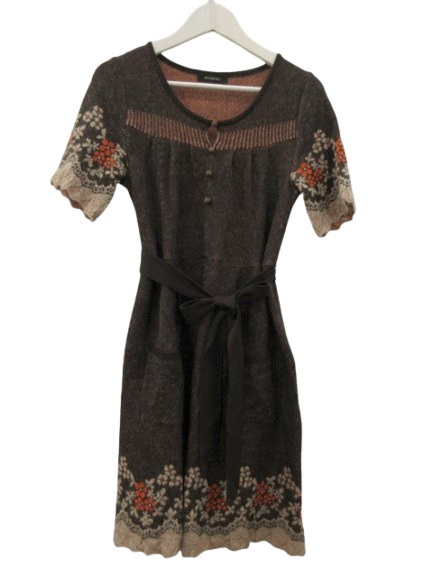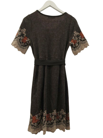 インゲボルグ INGEBORG ニットワンピース 半袖 膝丈 リボン 花柄 ブラウン系 茶色 9号 M レディース