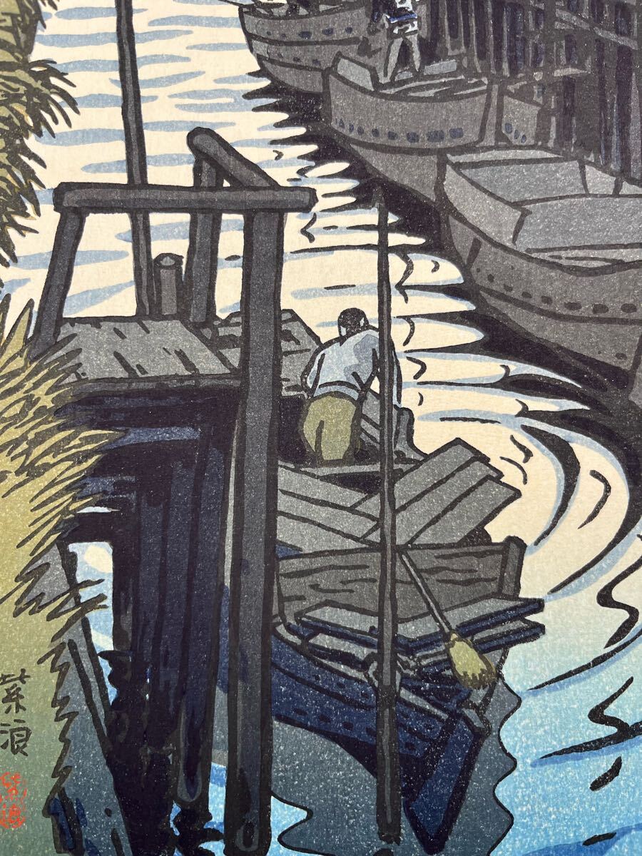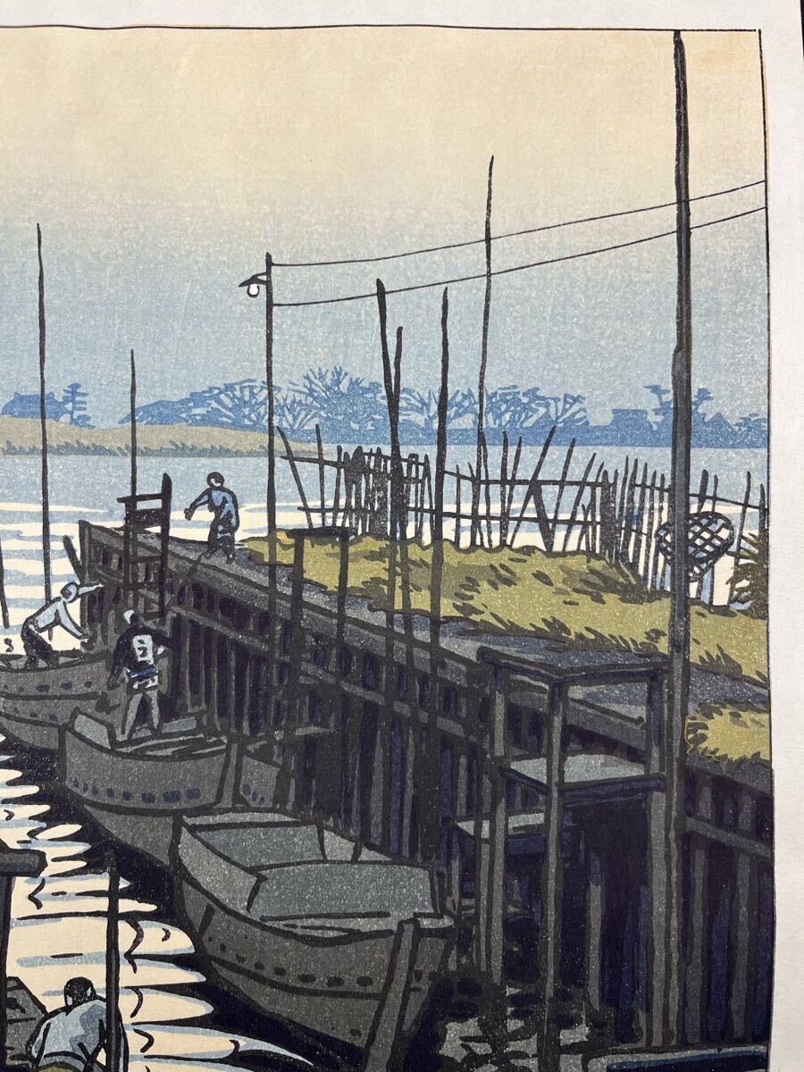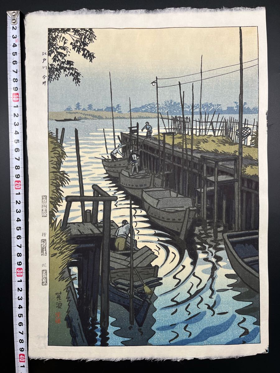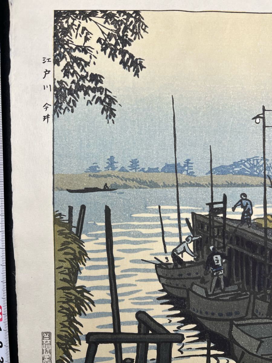 【真作保証】笠松紫浪「江戸川今井」芸艸堂 当時物 初版 浮世絵木版画 大判 錦絵 新版画 検:小村雪岱 吉田博 川瀬巴水