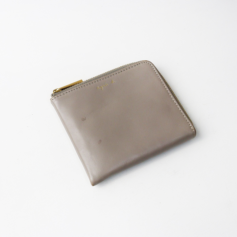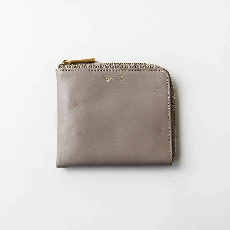 アニエスベー agnesb レザーLジップコンパクトウォレット ベージュ┃財布【2400014636536】