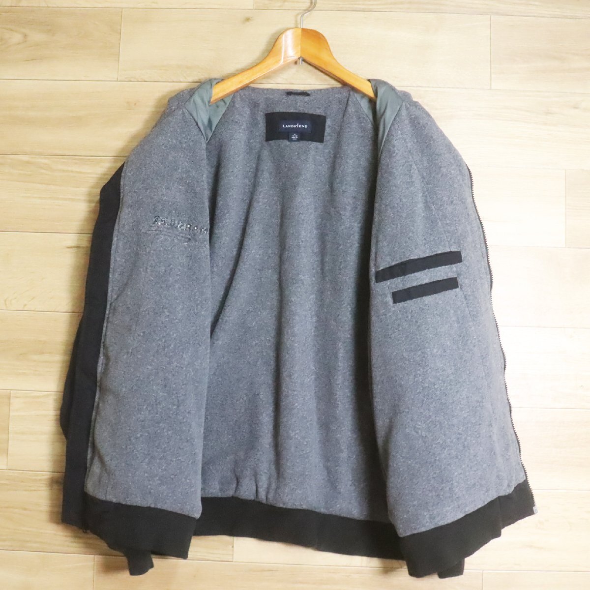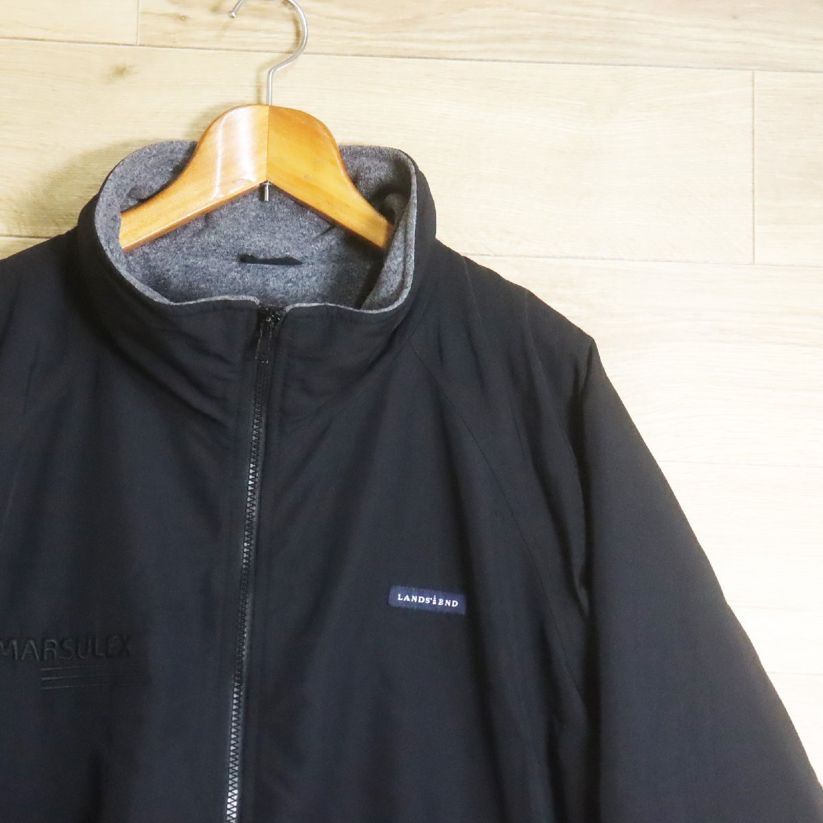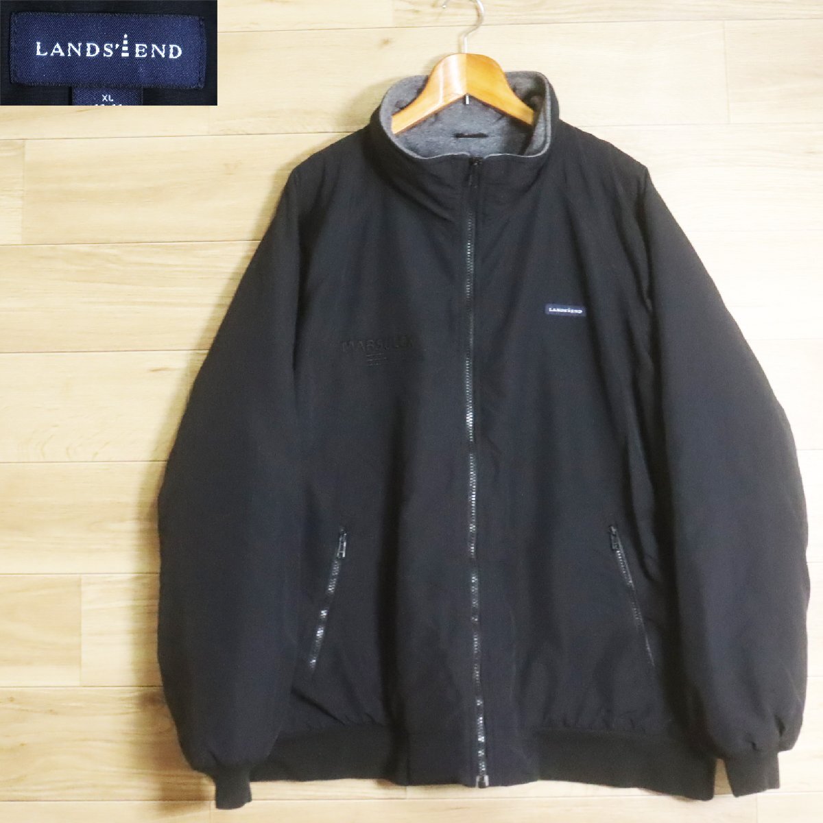 *12R/R7.14-1 LANDS' END ランズエンド スコールジャケット ナイロンジャケット 裏フリース ブルゾン ジャンパー XL ブラック