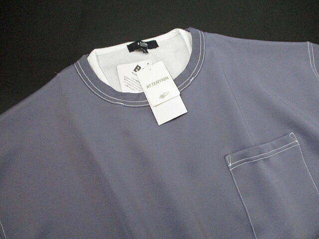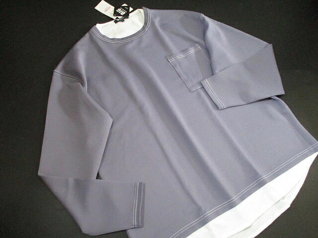 新品▼ 秋物 未使用! ビームス レイヤード風 長袖カットソー ポンチ BEAMS Mサイズ 重ね着 Tシャツ くすみカラー ブルー グレー 白
