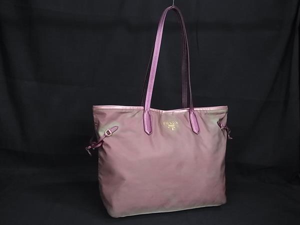 1円 PRADA プラダ テスートナイロン×レザー トートバッグ ショルダーバッグ 肩掛けかばん レディース ピンク系×パープル系 FN6740