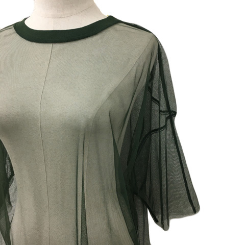 ニコアンド Niko and.. カットソー ラウンドネック プルオーバー チュール 無地 七分袖 F 緑 グリーン レディース