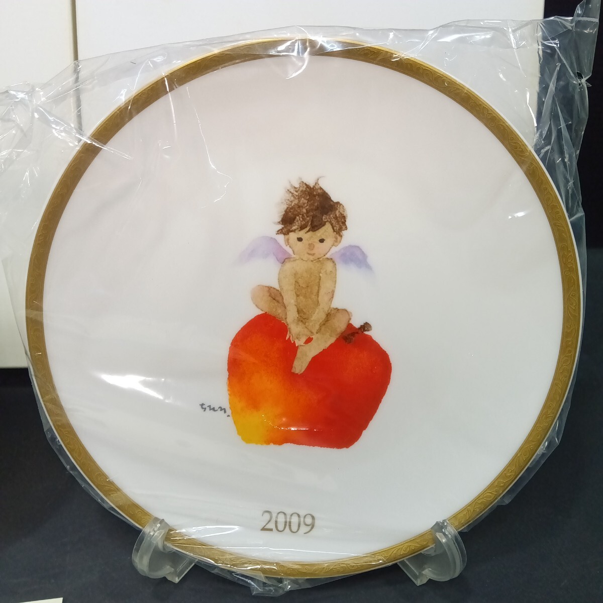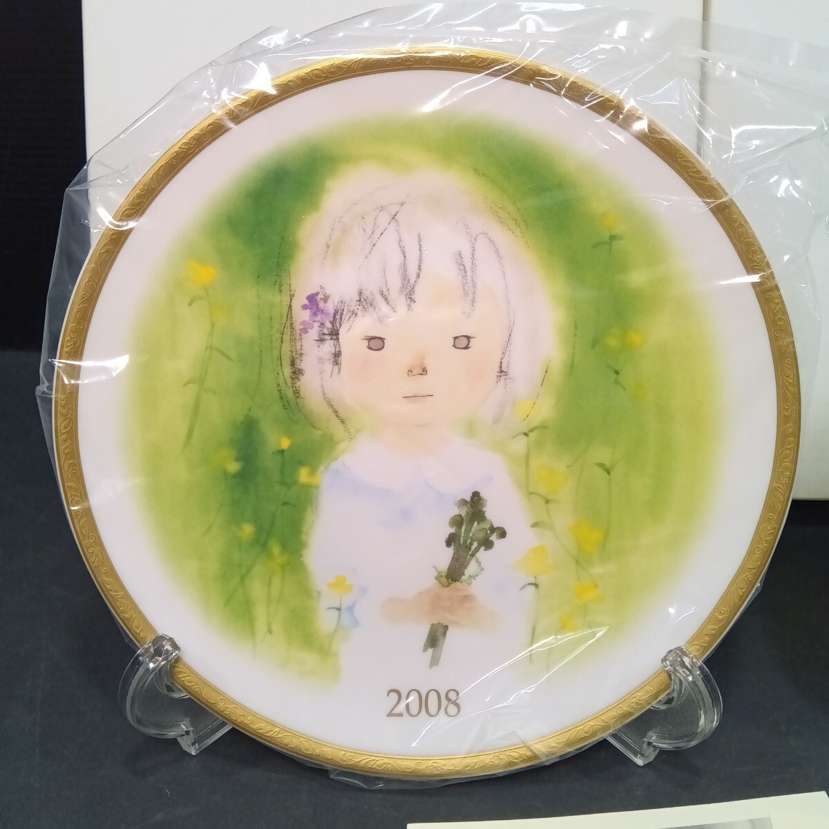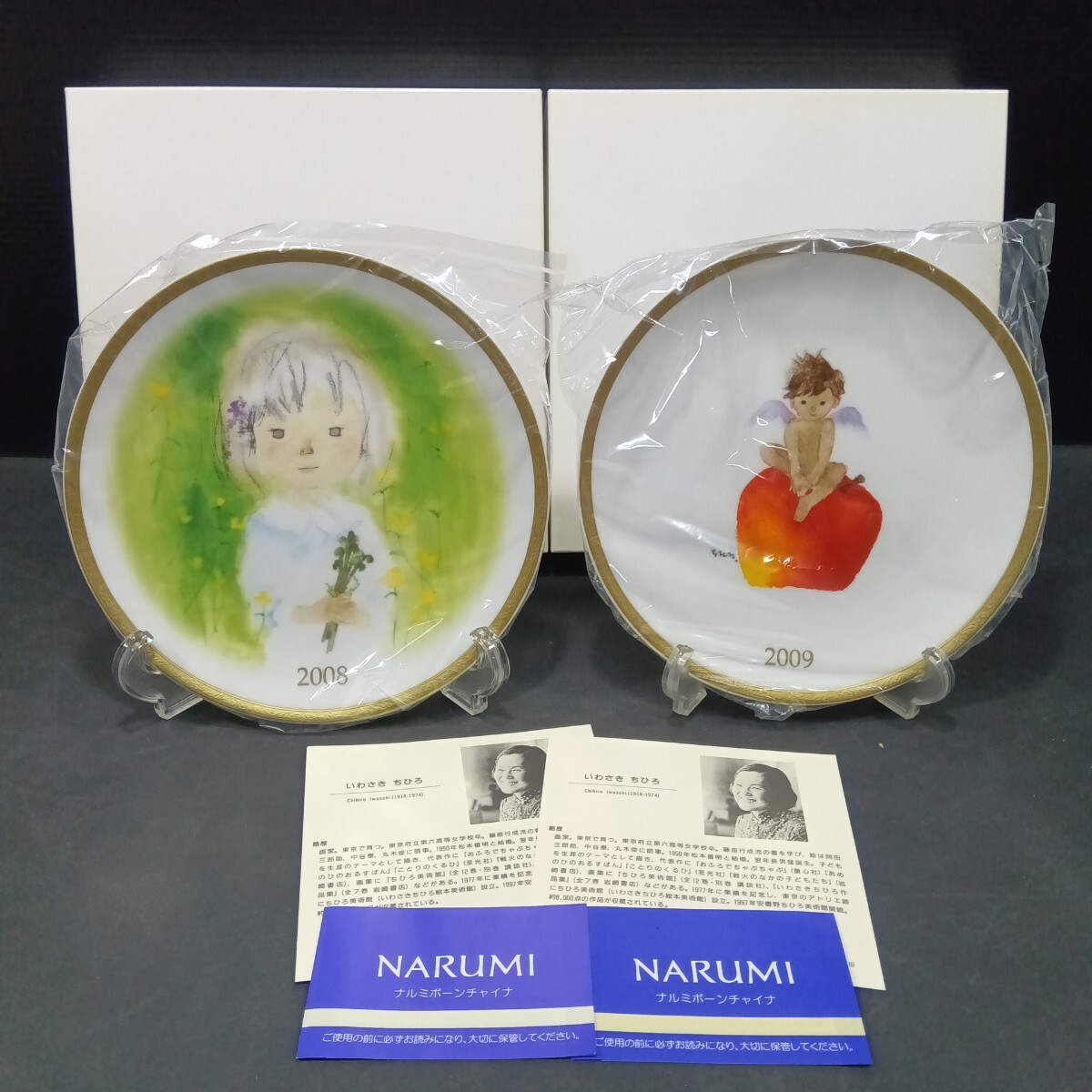 ①未使用 NARUMI ナルミ いわさきちひろ イヤープレート 2008年 2009年 2枚セット 限定 プレート皿 飾絵皿 高級 Bone China ゴールド 金彩