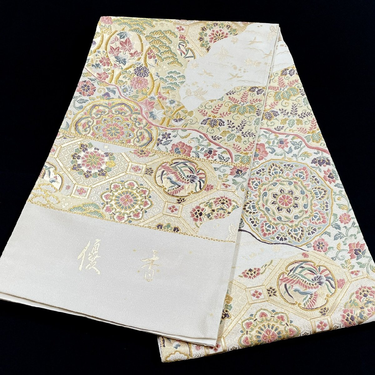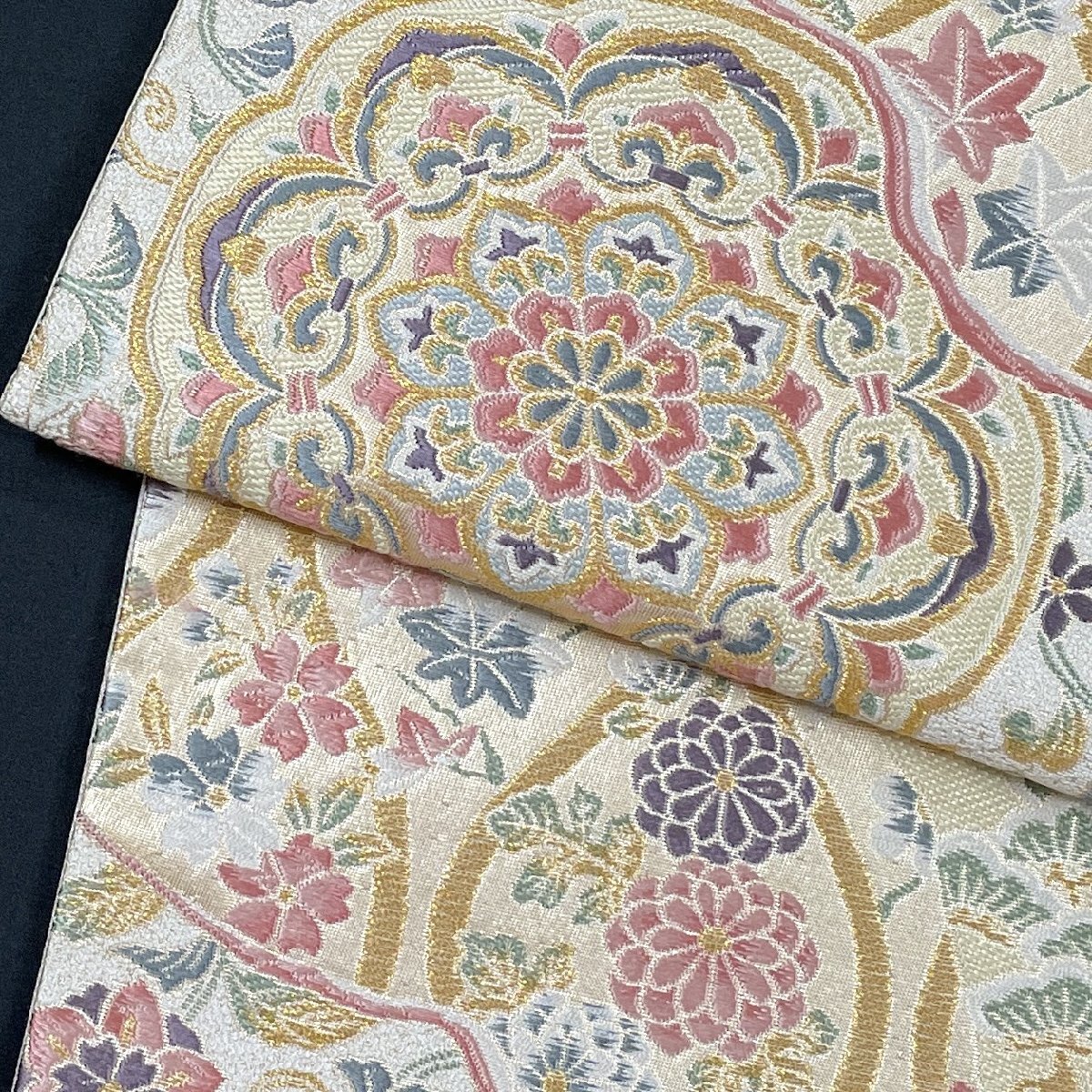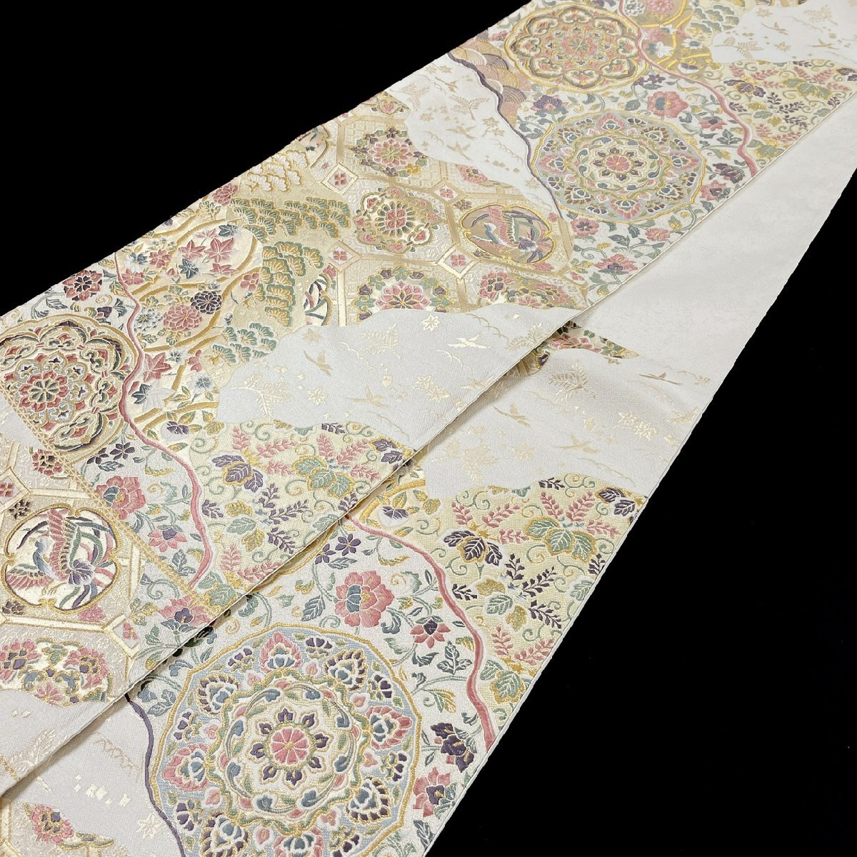 着物月花 京藝 華文様 袋帯 未仕立て品 六通柄 正絹 金銀糸 西陣織物 参考上代260,000円 ob7235