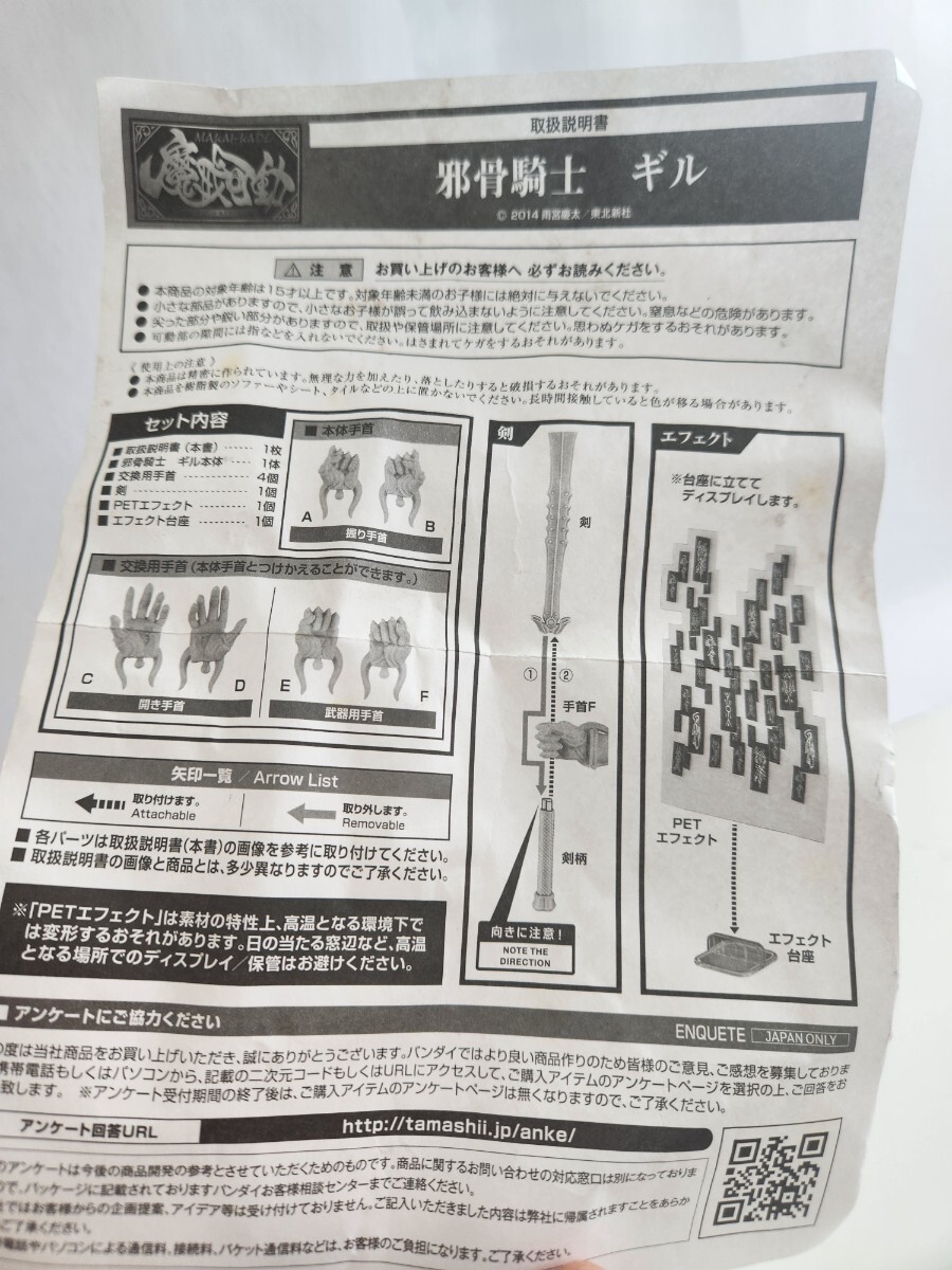 魔戒可動③「牙狼 GARO シリーズ」より「邪骨騎士 ギル」保存品(外箱なし、本体、パーツのみ(未使用)、画像参照、美品) BANDAI