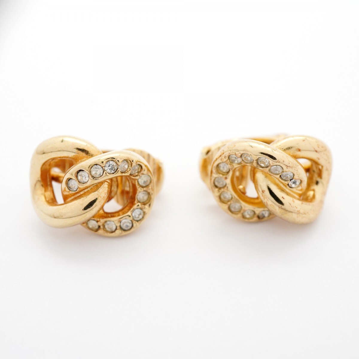 ★SALE【5jib0333】クリスチャンディオール イヤリング チェーン GPメッキ ラインストーン ゴールド【中古】レディース