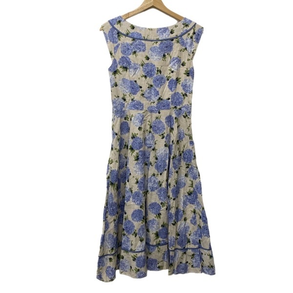 ローラアシュレイ LAURAASHLEY サイズ9 M - ライトグリーン×ベージュ×ライトブルー レディース 花柄/ノースリーブ 美品 ワンピース