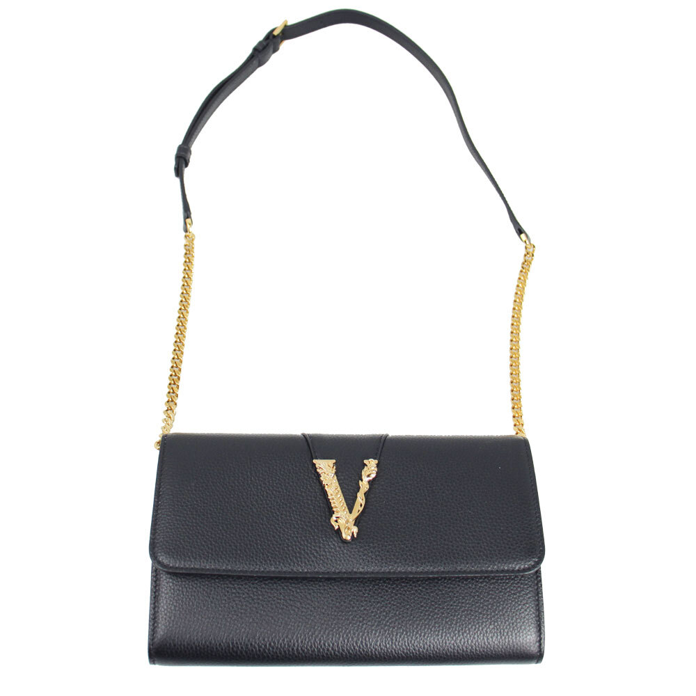 バロッコ レターVモチーフを装飾としてあしらった金具が印象的なヴェルサーチのショルダーバッグです。 取り外し可能なショルダーストラップチェーンが特徴的なデザインで、コンパクトなバッグ、チェーンウォレットとしての他に、クラッチバッグとしてもご使用いただける万能なアイテムです。 ワンランク上のおしゃれを楽しめる清楚で上品なデザインです。 | |