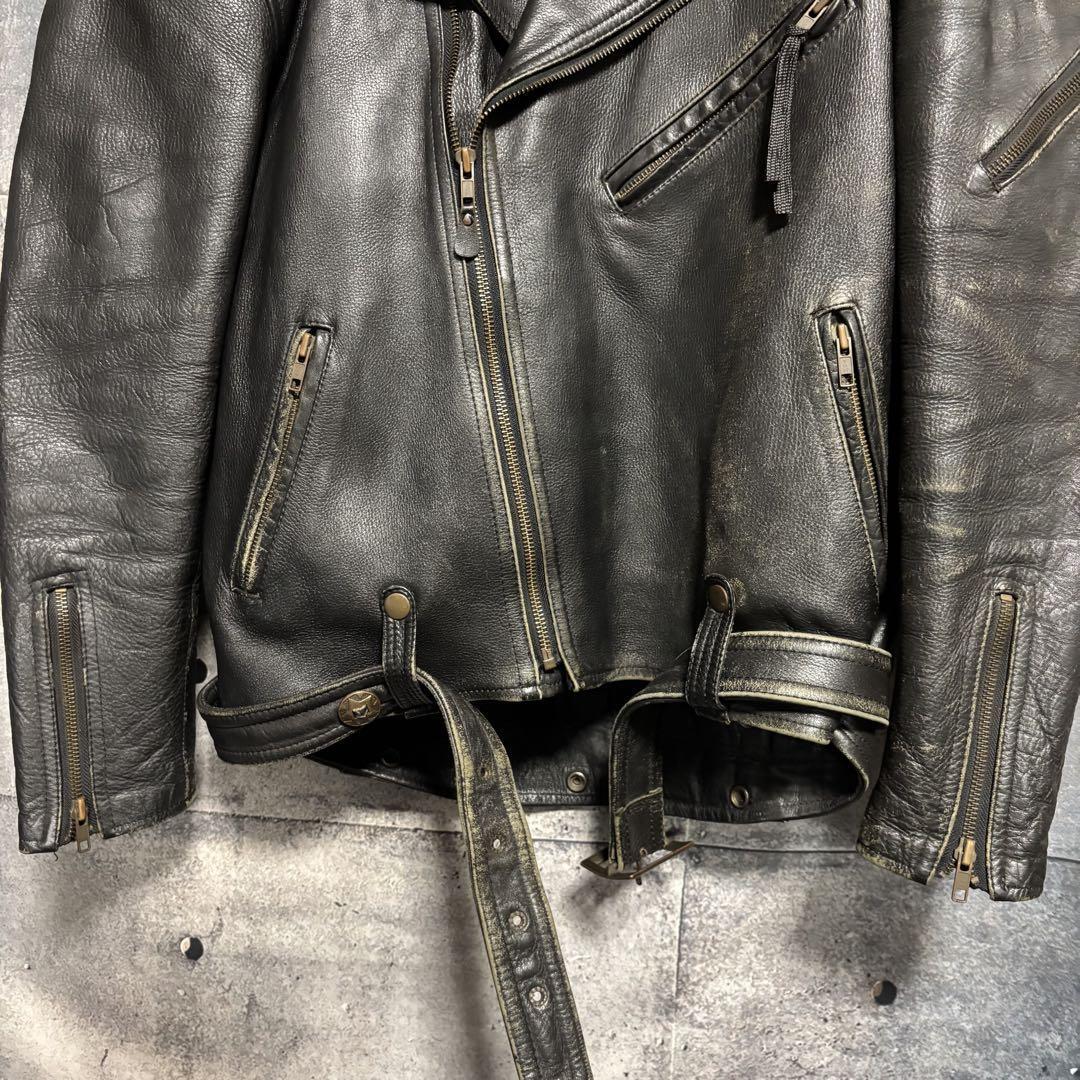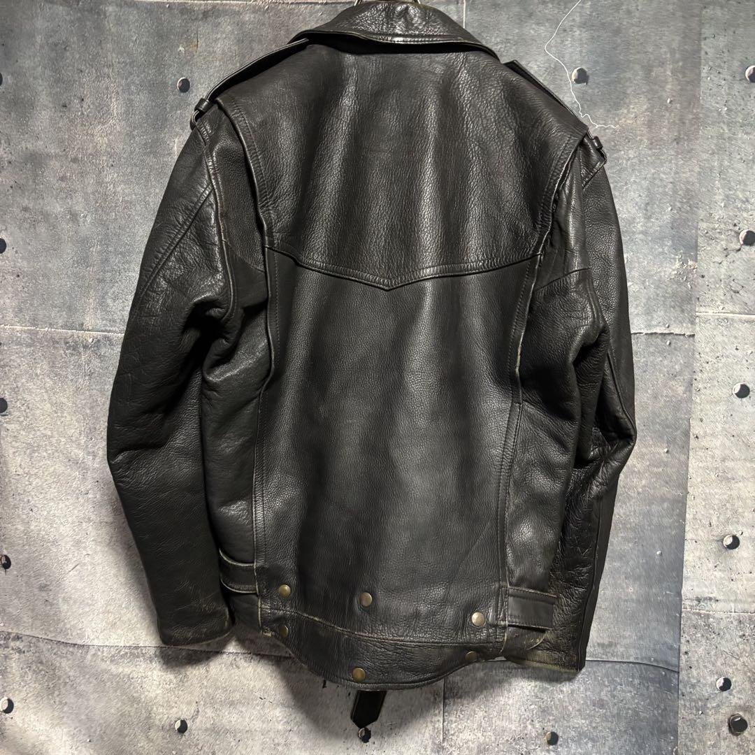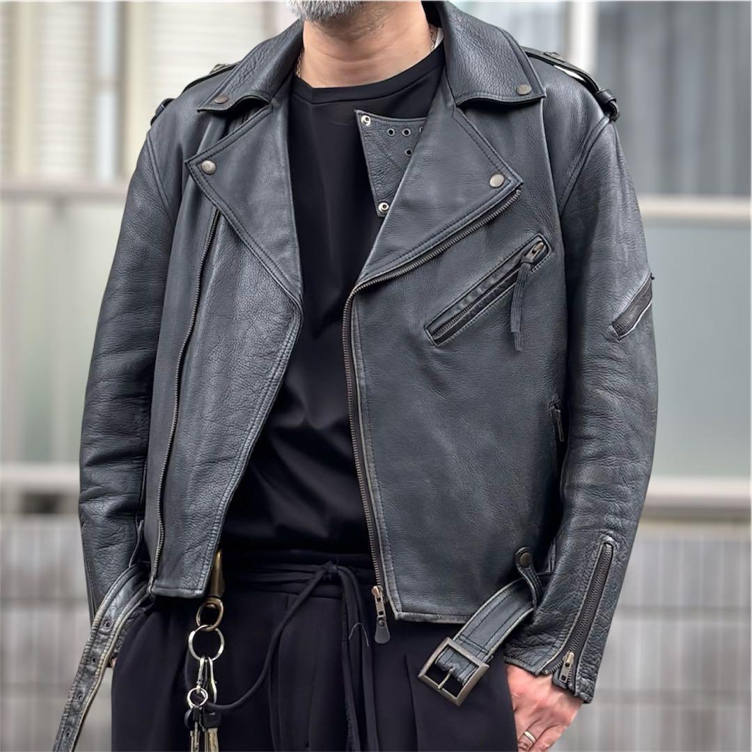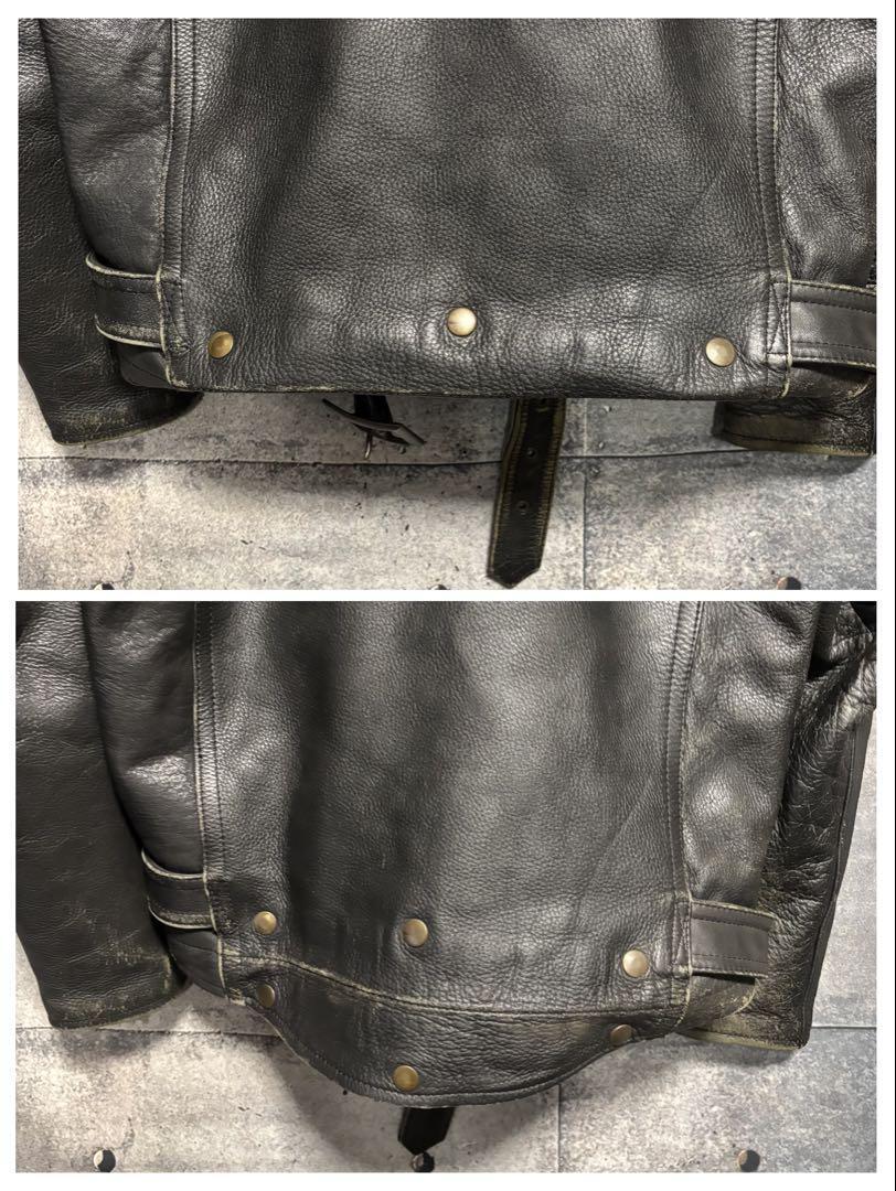 牛革100%の重厚な作りで、肩章・ウエストベルト・複数ポケット・スタッズなどクラシカルなディテール満載。