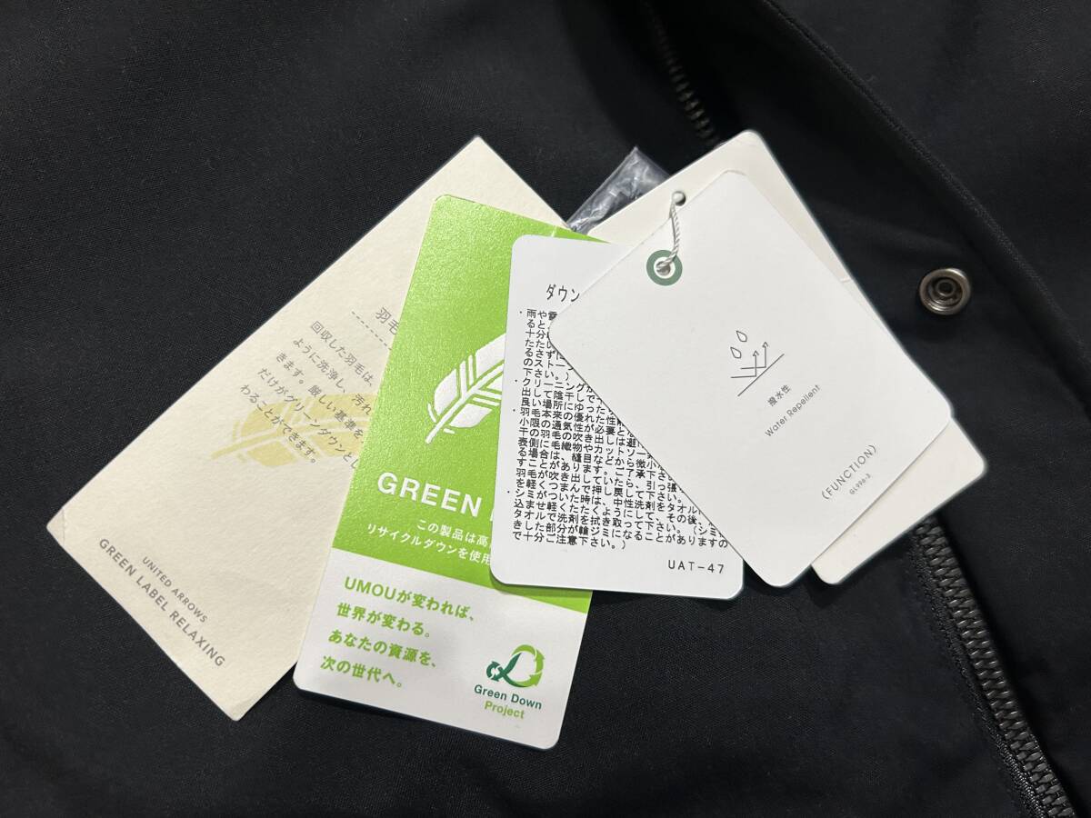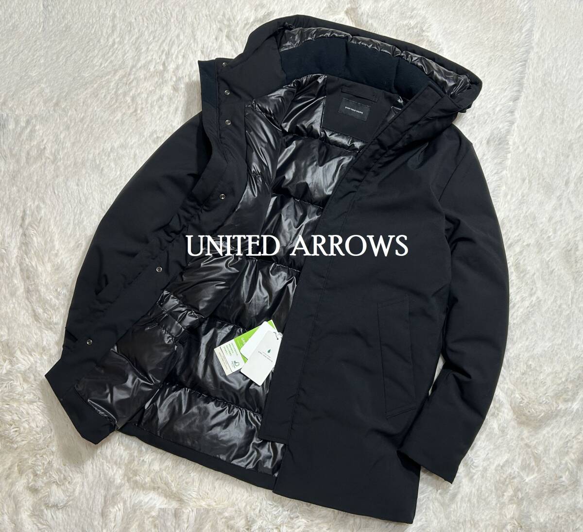 新品 ユナイテッドアローズ 高品質グリーンダウン 撥水機能 タイプライター生地 ダウンジャケット ブラック S
