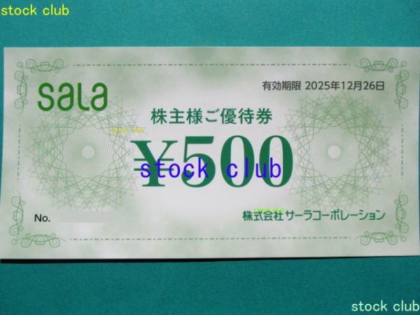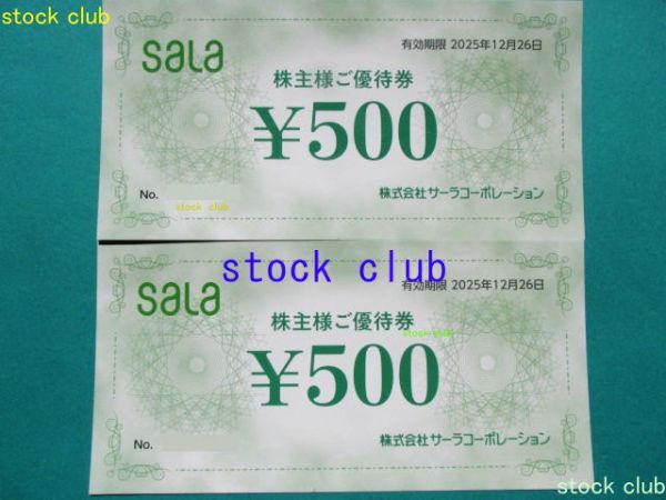 サーラコーポレーション株主優待の株主優待券500円券2枚(1,000円分)です。