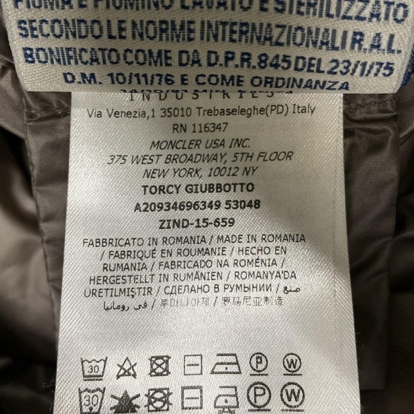 モンクレール MONCLER ダウンジャケット サイズ1 S TORCY(トルシー) グレーベージュ レディース 長袖/冬 美品 ジャケット