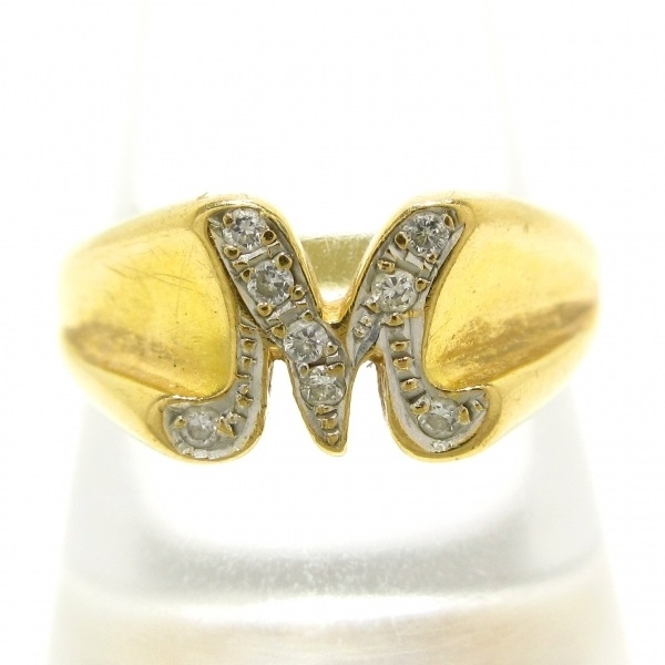 ノーブランド Unbranded リング 15 号 K18×ダイヤモンド ダイヤ0.08ct/Mモチーフ/8Pダイヤ/総重量3.7g アクセサリー(指)
