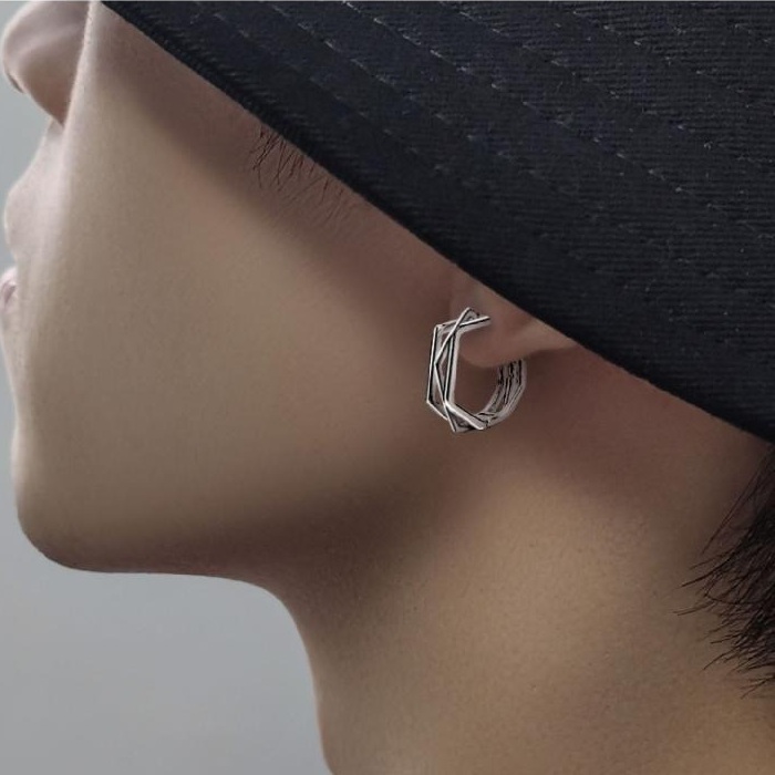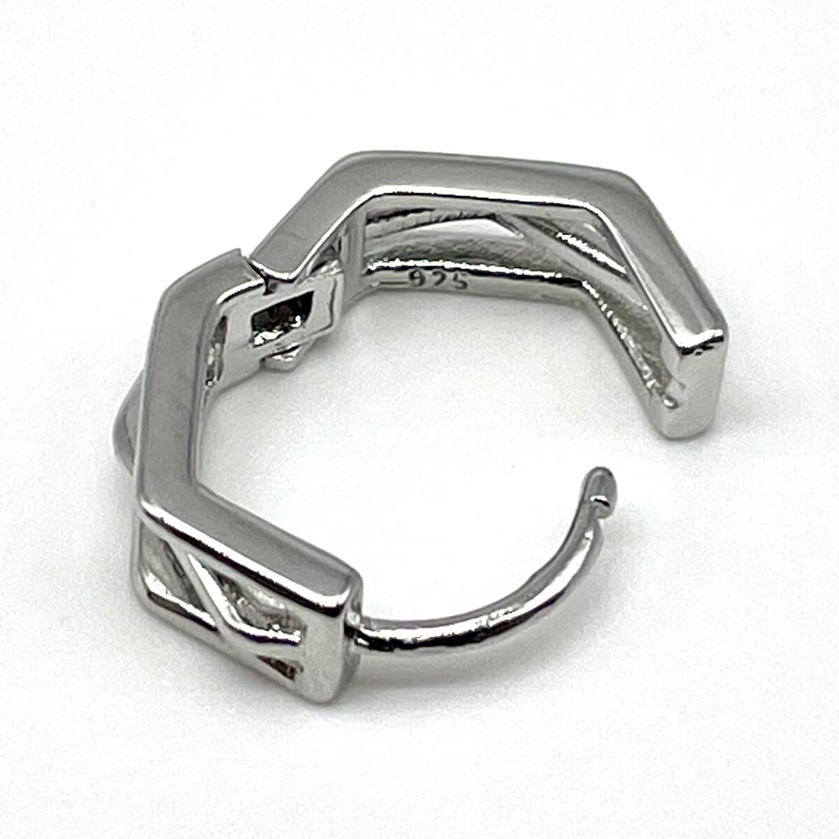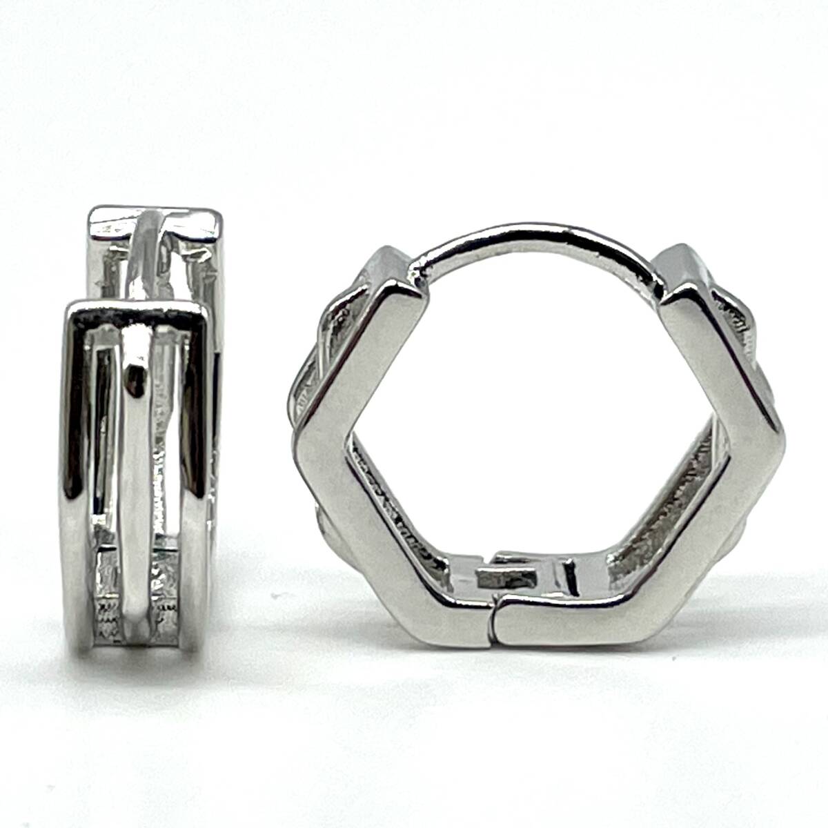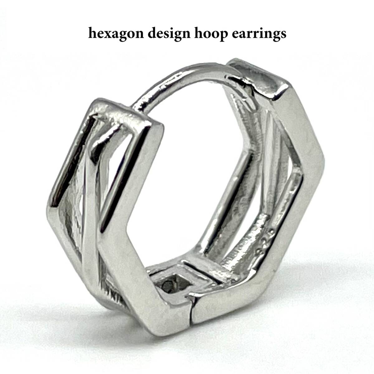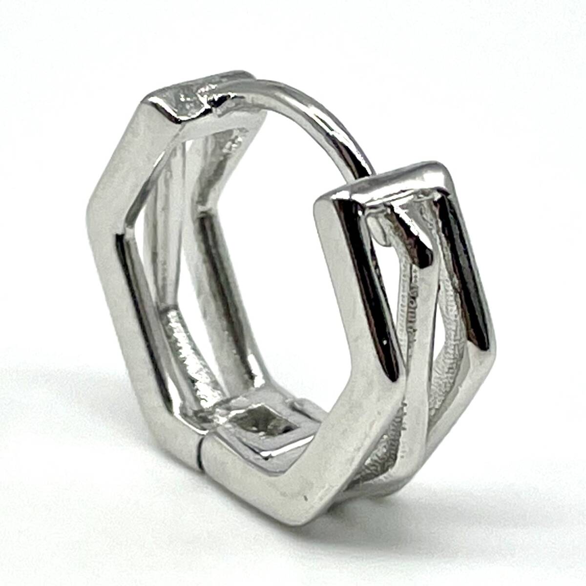 互い違いのヘキサゴンデザインがシンプルながら個性を放つこだわりのシルバーピアス。