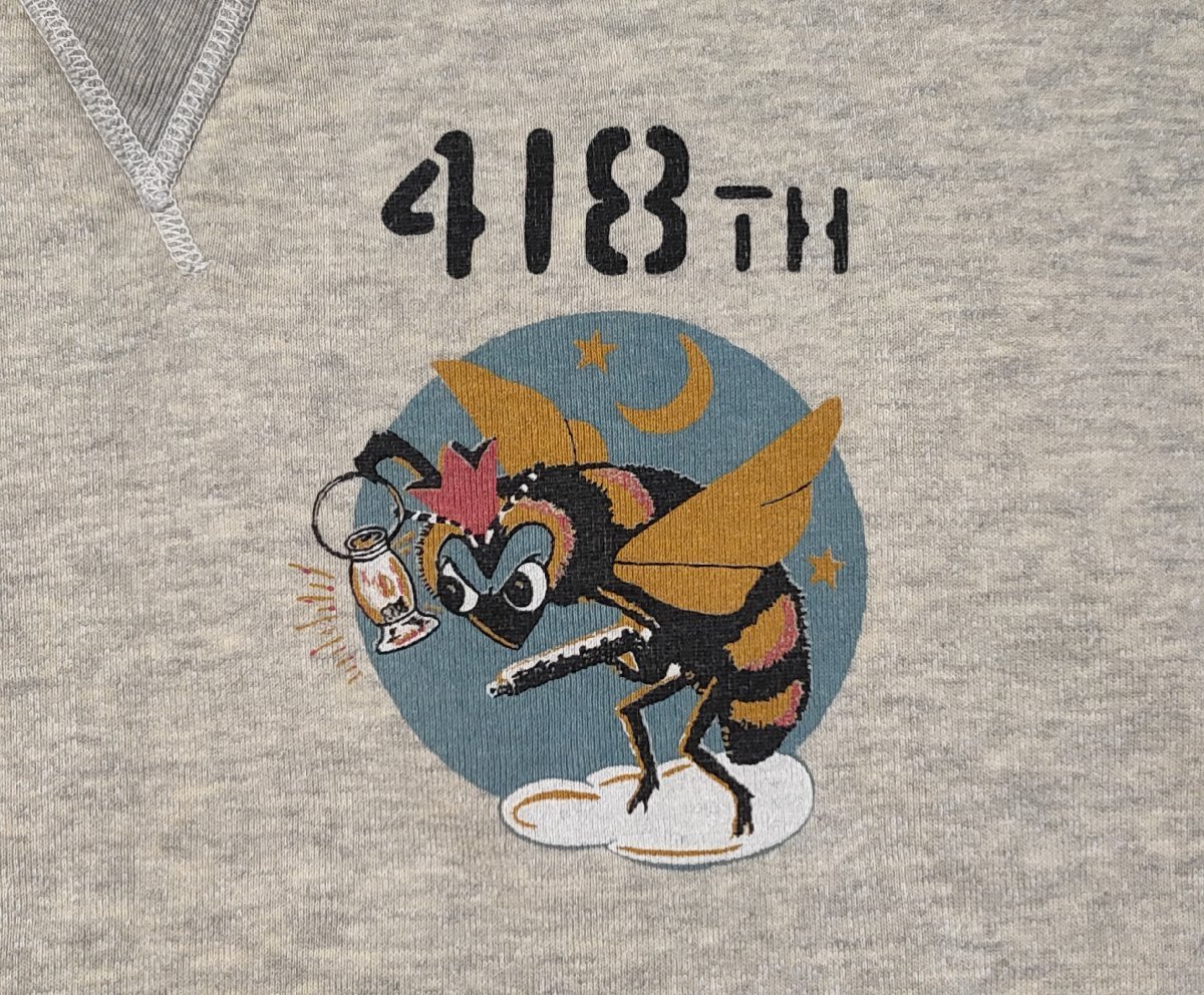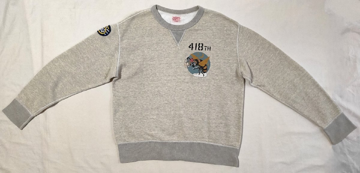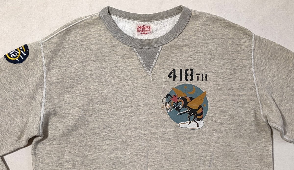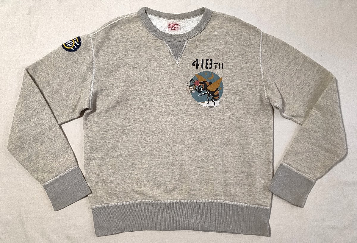 ★THE REAL McCOY'S ザ リアルマッコイズ★418TH スコードロン ミリタリー スウェット トレーナー ワッペン刺繍 sizeXL ライトグレー 03029