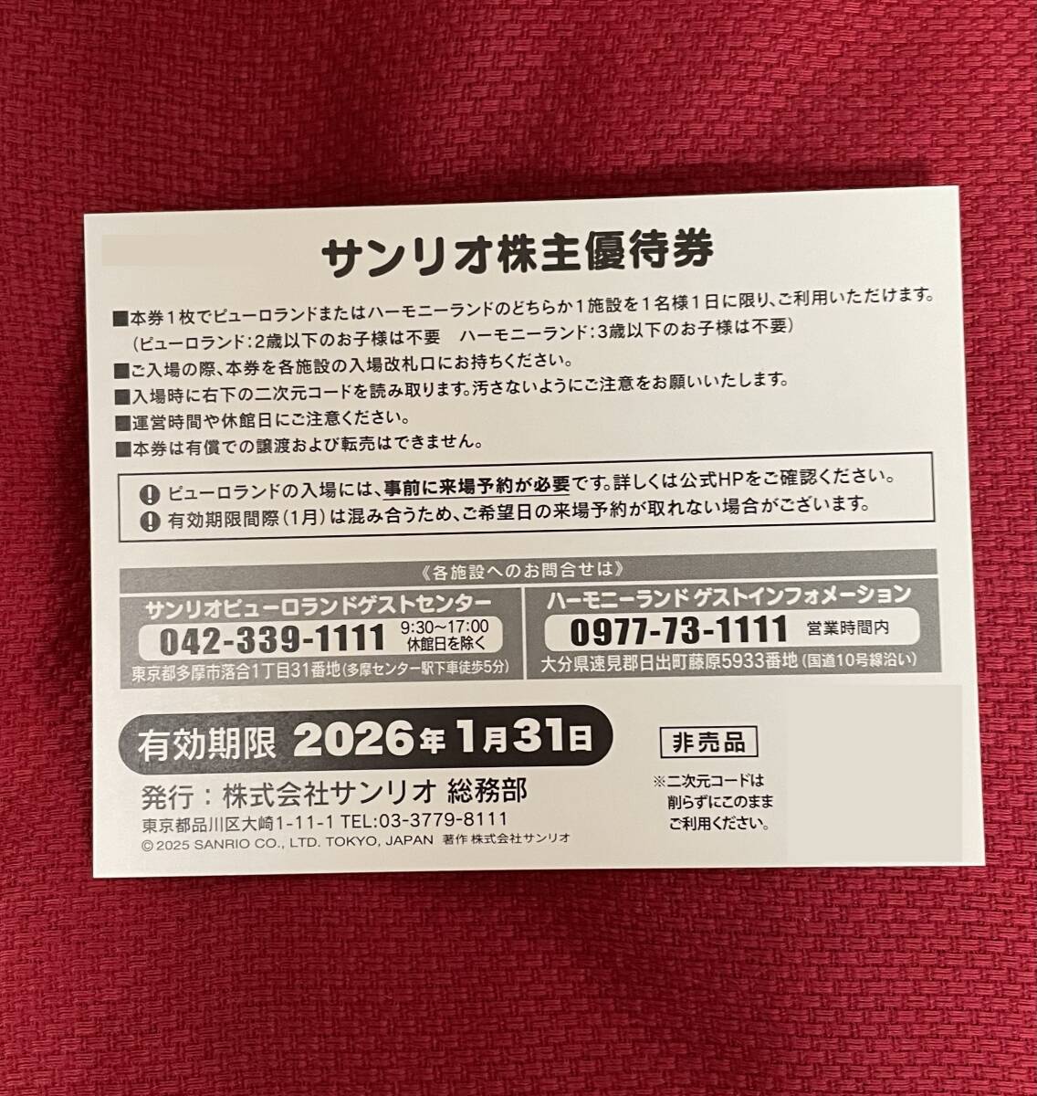 サンリオ 株主優待券◆1枚◆サンリオピューロランド ハーモニーランド