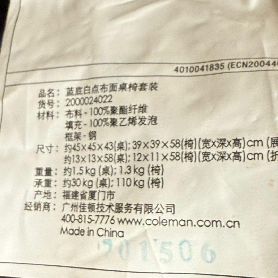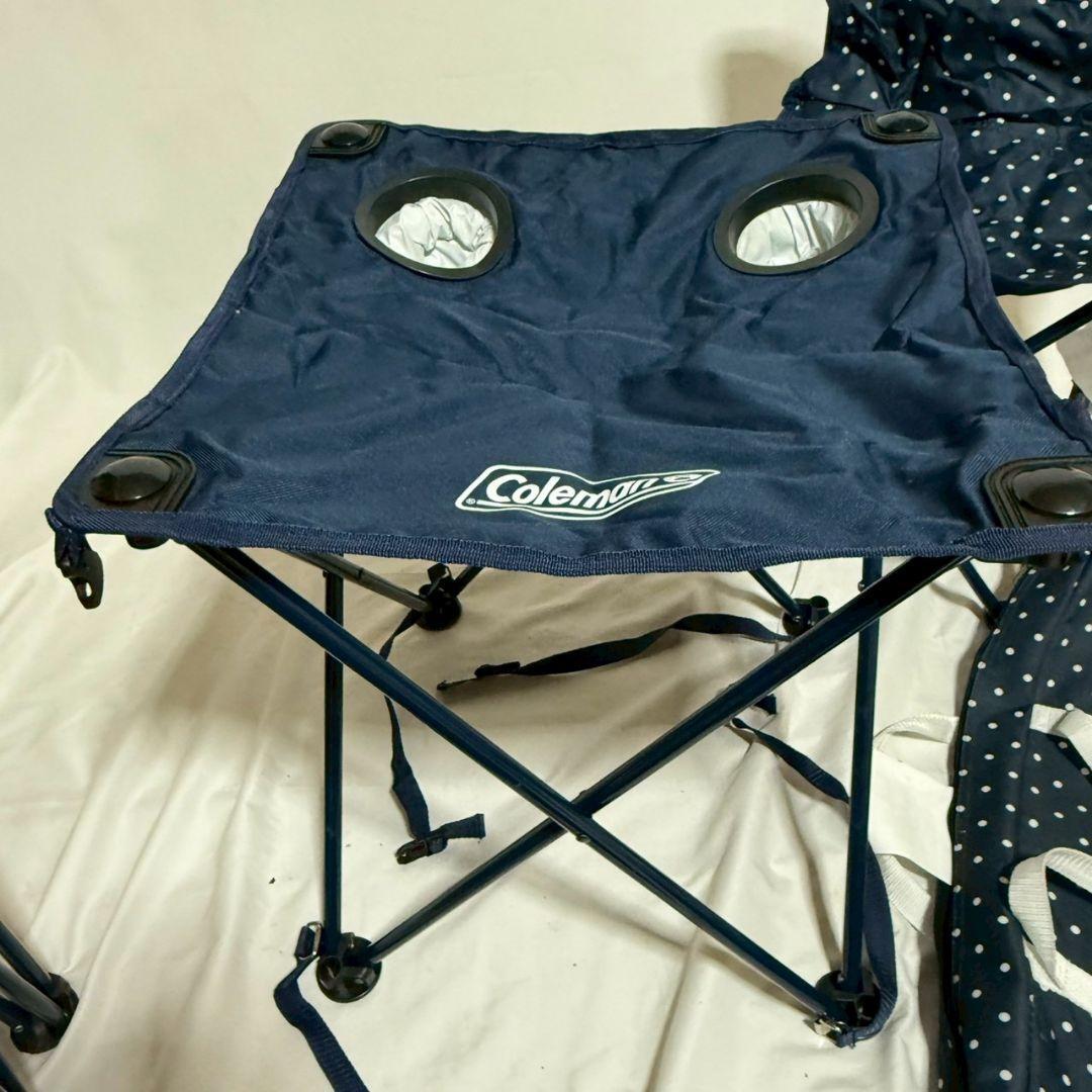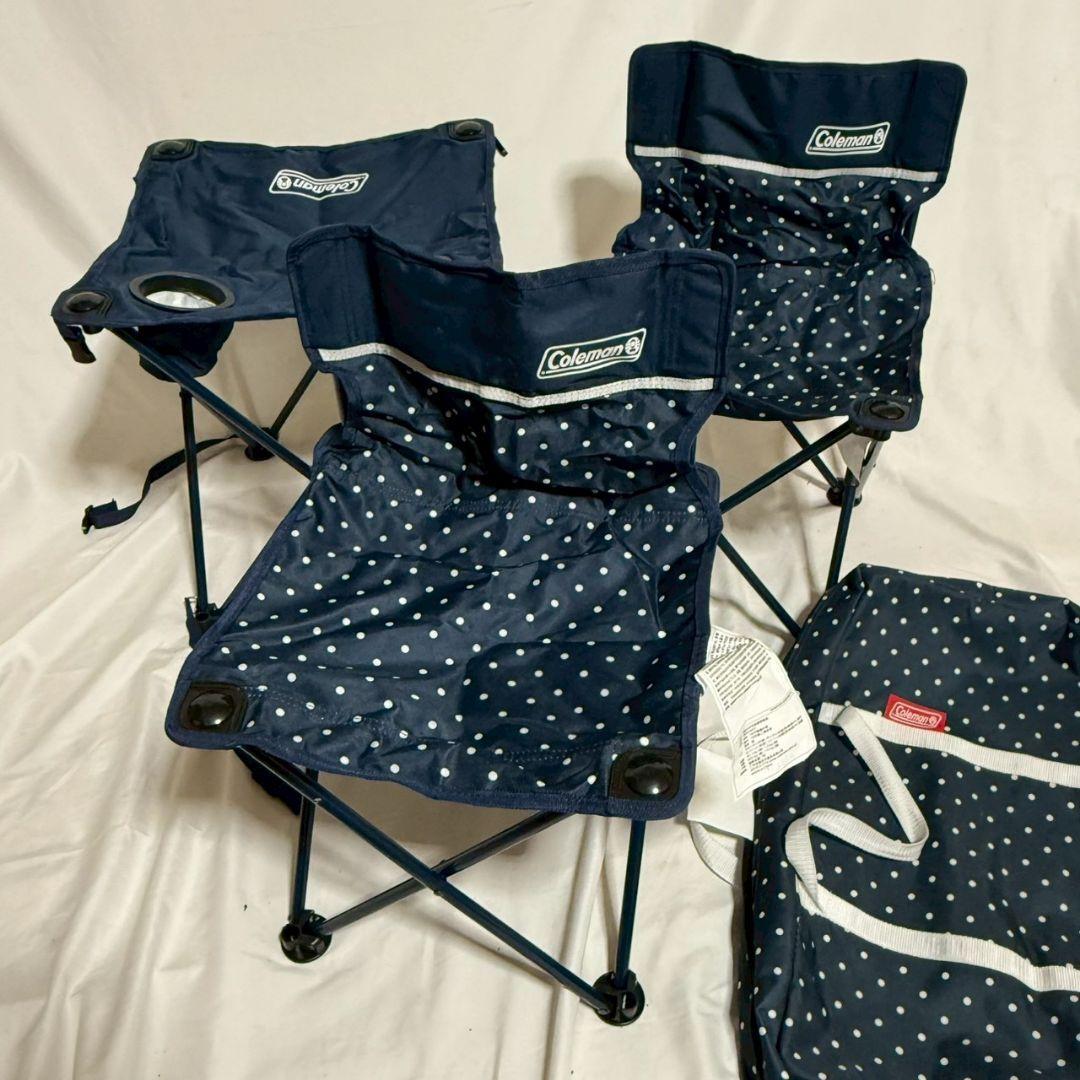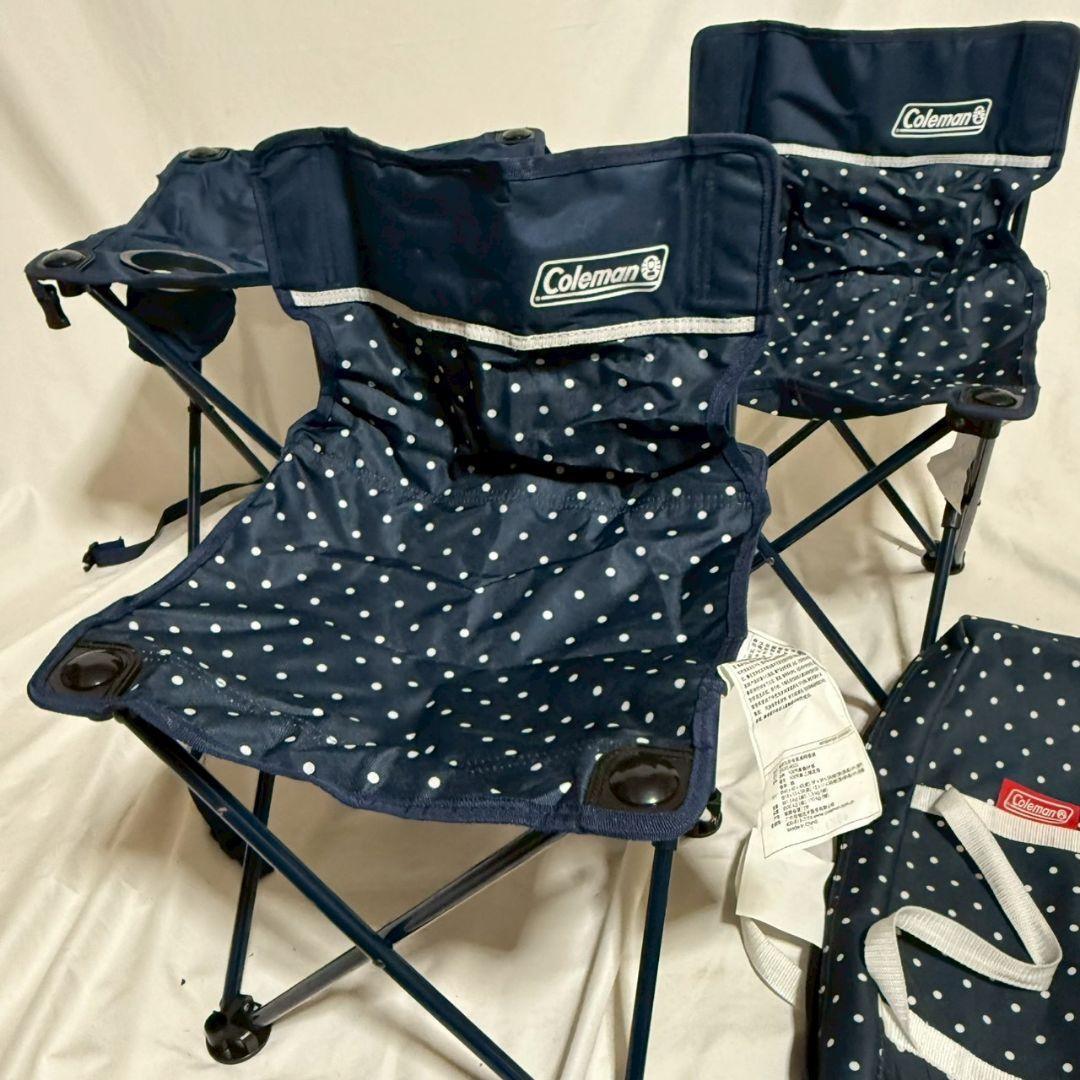ネイビーのドット柄、折りたたみ式のColemanチェア2脚セット。