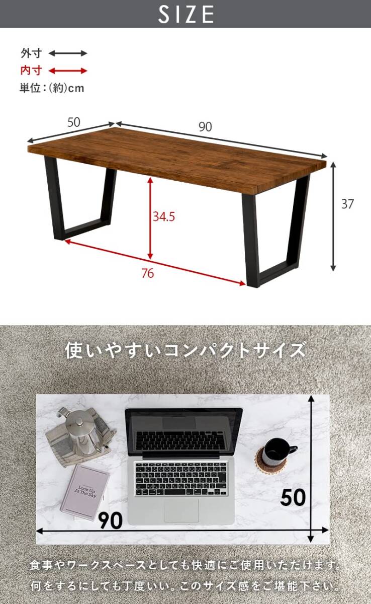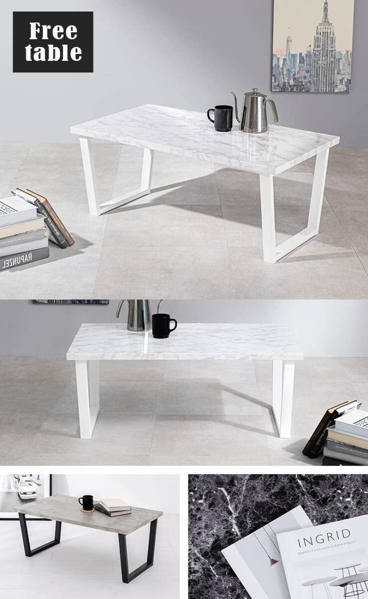 萩原(Hagihara) ローテーブル センターテーブル 机 【大理石調天板×スチール脚】 シック モダン リビング ソファテーブ