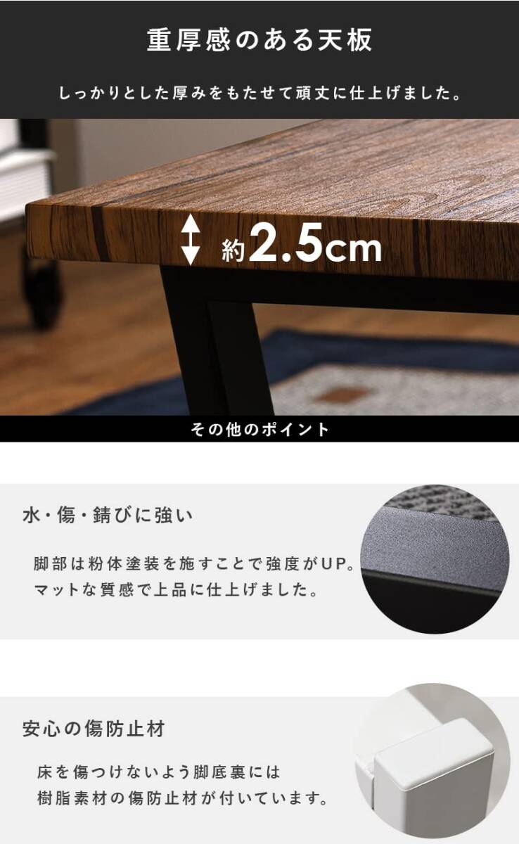 【丈夫さへのこだわり】:天板裏にはスチールの補強材を施し、より長くご使用いただけるように仕上げました。