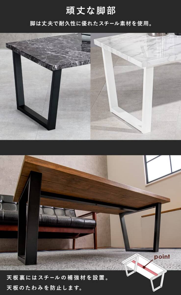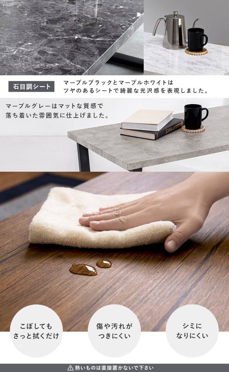 【異素材の組合わせでデザイン性UP】:リアルで本物に近い大理石調シート張りの天板と耐久性に優れたスチール脚がインテリアとしての存在感を発揮。
