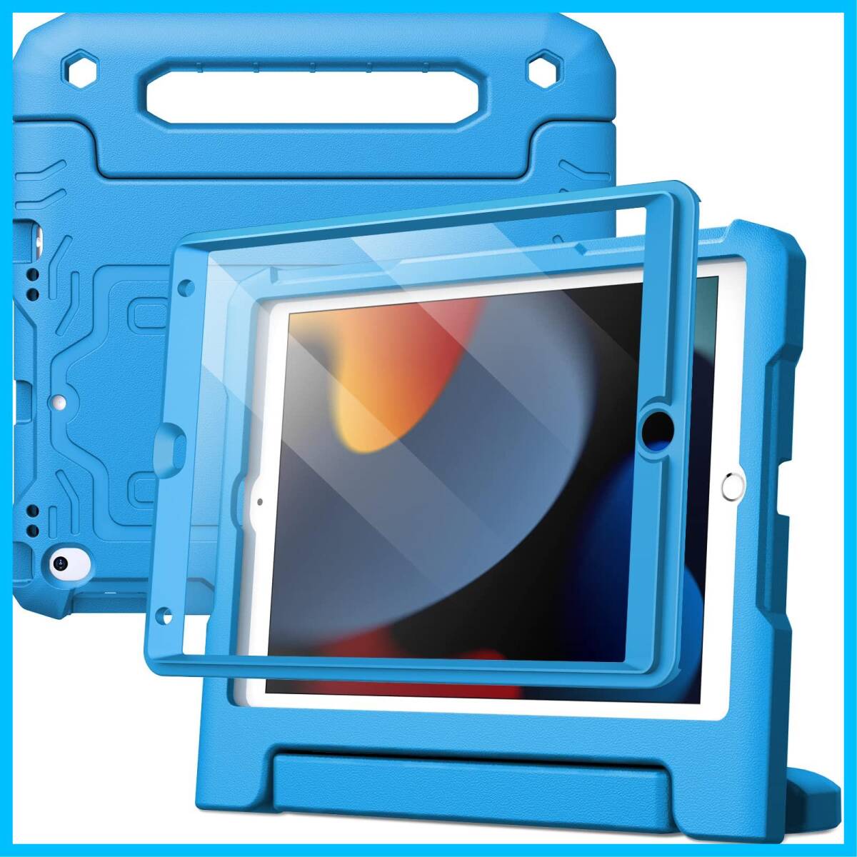 フルボディハンドルスタンド 耐衝撃 タブレット保護カバー 液晶保護フィルム付き (第9/8/7世代、2021/2020/2019)