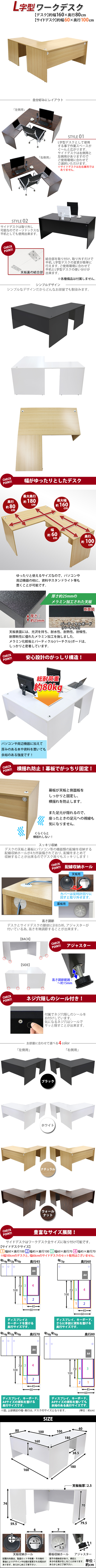 | 商品紹介 | ■作業スペースを広く確保出来る、L字型ワークデスクです。 ■サイドデスクの幅が約60cmのタイプです。 ■会議室や事務所等、オフィス家具として様々なシーンでお使いいただけます。 ■天板には、メラミン加工を施しています。 ■幕板が天板と側面板をがっちりと固定!横揺れを防止します。 ■ネジ穴隠しのシール付き。 ■デスクの天板と幕板に配線収納ホールが2カ所ずつ備わっています。 ■アジャスターで高さの調節が可能です。(高さ調節範囲〜約15mm) ※こちらの商品は、組立て式です。組立てにはプラスドライバーが必要です。お客様でご用意ください。 ※組立図が付属します。 ※サイドデスクの取り付けはデスクの右側専用となります。 ■材質:パーティクル(パーチクル)ボード(メラミン加工)(本体、サイドデスク)、プラスチック(アジャスター、配線収納ホール) ■重量:約65kg(デスク:約44kg、サイドデスク:約21kg) ■総耐荷重:約80kg ●新品商品ではありますが、輸入商品の為、多少の擦り傷などがある場合がございますので、ご納得の上ご購入下さいませ。 ●ご購入後、お客様ご都合によるご返品、ご返金等は一切お受け致しておりません。 ●本商品を使用した際に発生したトラブル、事故につきまして、当社は一切の責任を負いません。ご使用に関しましては、全て自己責任にてお願い致します。 ※カラーはナチュラルとなります。 |