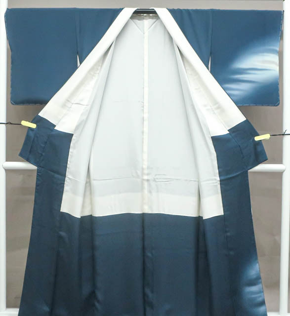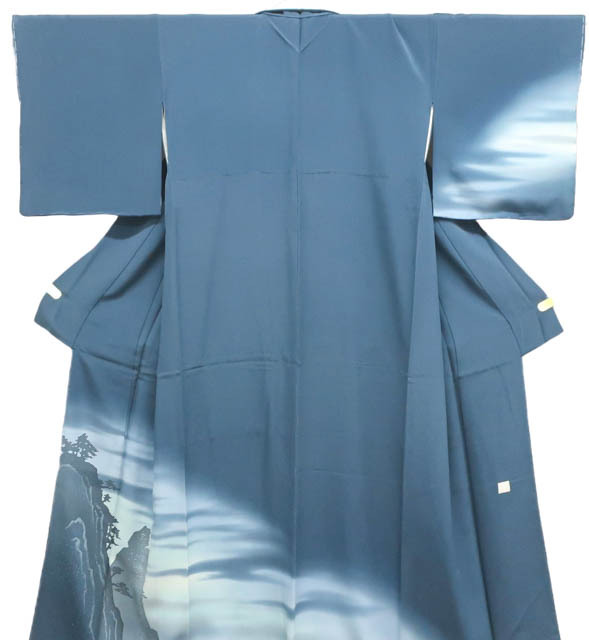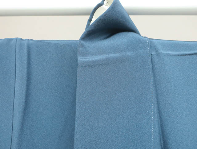 リサイクル商品のため、肩山に薄汚れがございますが着用可能なお品です。 仕付け付きでございます。 地色は、灰青色です。 1枚目の画像が近いお色かと思われます。 素材は正絹です。 |