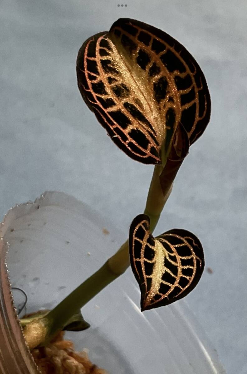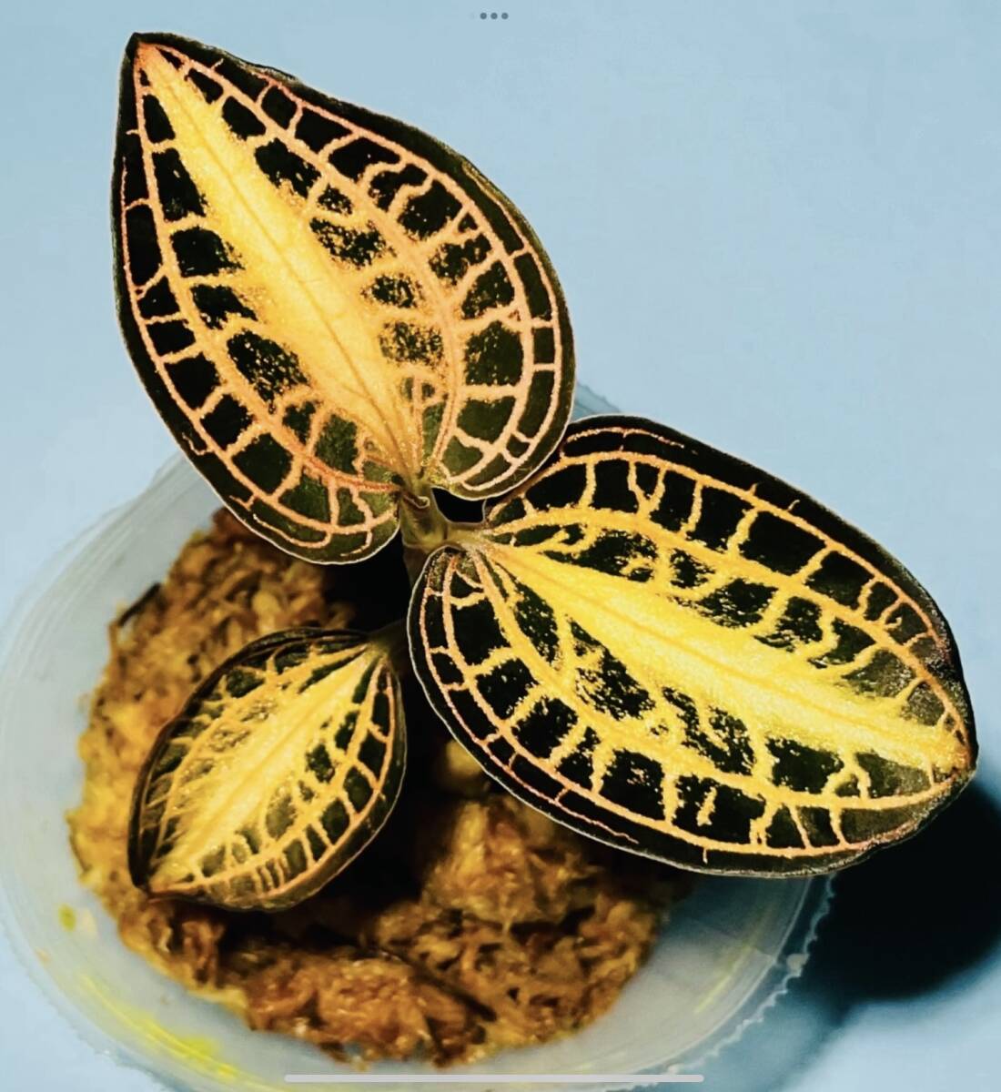 普通鉢に入っただけの栽培は難しくプラカップ テラリウム等 環境は湿度70-90%と高く 耐寒暑は5-35℃ 理想生育温度は22-28℃ 又 根は体を支える役め 根がない場合でもジュエルオーキッドは体全体で空気中より栄養分をとる仕組みになっている 根基の黄色い粉末は殺菌剤 プラポットは栽培用で半透明が必携