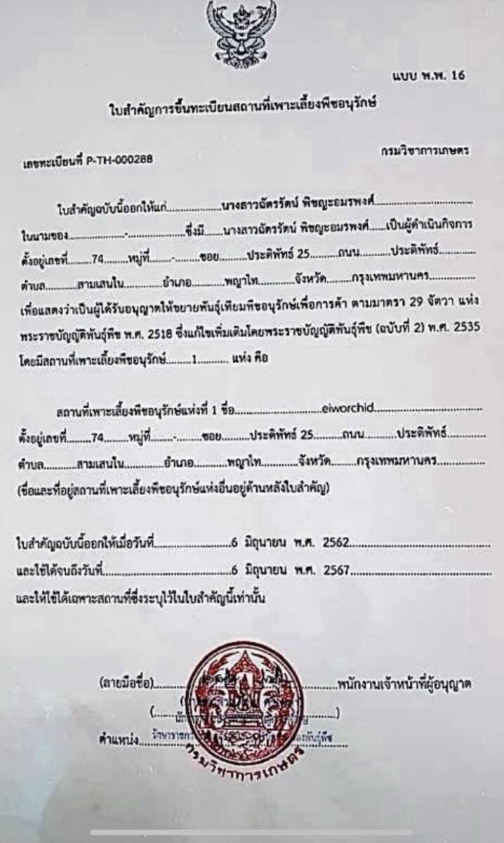 Cites.No.P-TH-000288(ワシントン条約国際許可証写真5添付