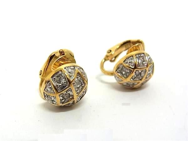 ■美品■ GROSSE グロッセ ラインストーン クリップ式 イヤリング アクセサリー レディース ゴールド系 DG5649