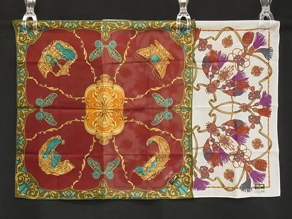 ■新品■未使用■ CELINE セリーヌ フラワー柄 ハンカチーフ ポケットチーフ 2点セット まとめ売り DI3932