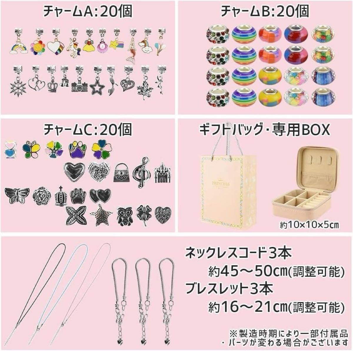 【セット内容】チャーム(A/B/C)×各20個/ネックレスコード×3本/ブレスレット×3本/ギフトバッグ/専用BOX ※製造時期によりギフト袋や一部パーツが変更になる場合がございます。予めご了承ください。