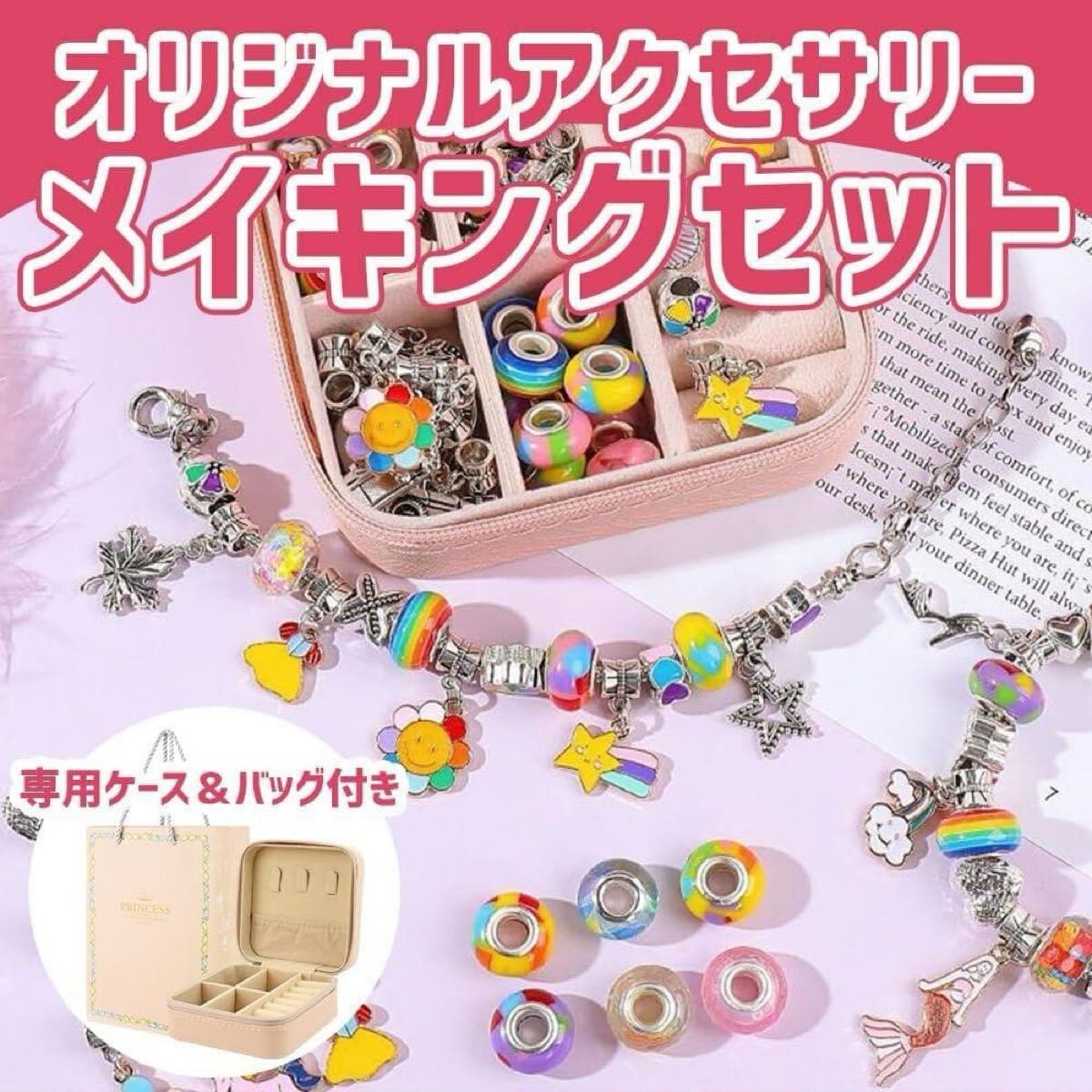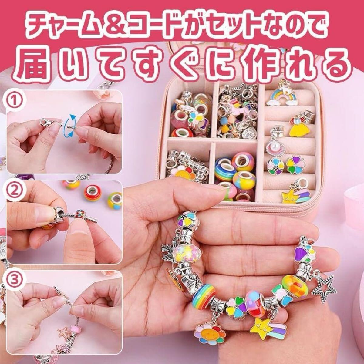 アクセサリー製作キット チャーム 紐通すだけ ネックレス ブレスレット 手作り 収納ケース (レインボー)